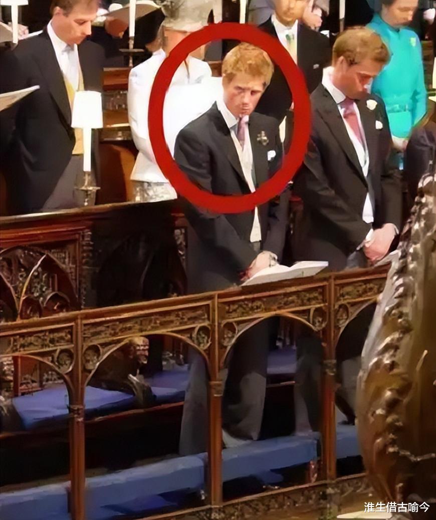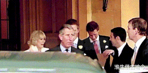 2005年,在查尔斯和卡米拉婚礼上,威廉低头哈里仇视冲父亲砸礼花