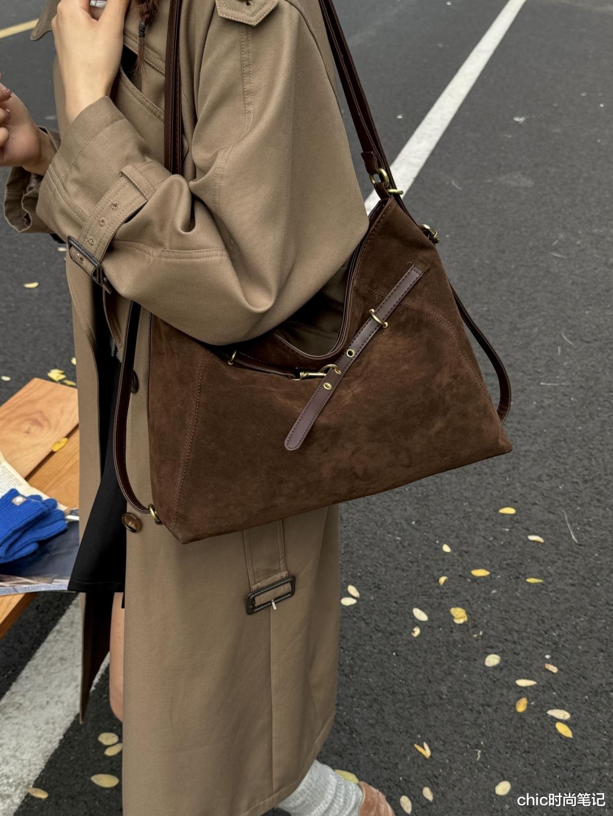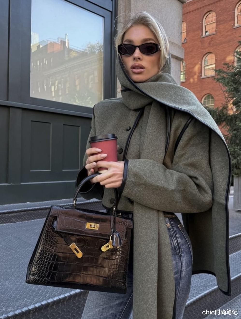 03“手拿”背法,提升时髦度:无论是法棍包还是结构感肩包,都可以尝试用手直接握住包带,或像拿手拿包一样夹在臂弯。这种背法能瞬间提升随意又优雅的气质,特别适合搭配宽松的秋冬外套。