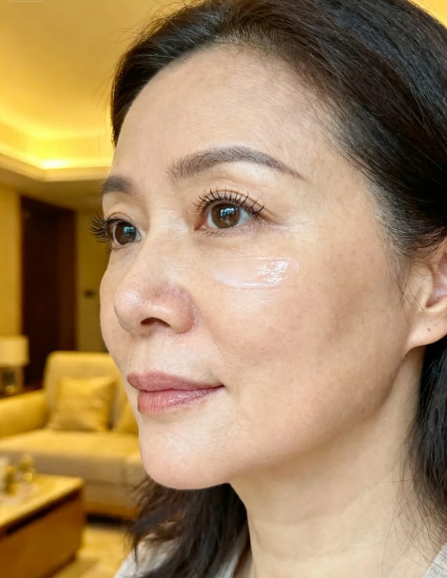 用户B(45岁,干性敏感肌,教师):“眼周皮肤很薄,很多眼霜用了会发热。这款完全不会,滋润度够,而且之前很深的泪沟看起来平滑了一些,肤色也亮了,会坚持用下去。”