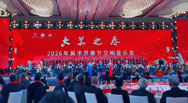 “大美之春”音乐会作为美术界年度新春盛事,早已成为连接艺术与大众、传承文化与创新表达的重要平台。本次演出以“大美之春”为主题,将中国传统美学精神与交响音乐的恢弘叙事巧妙结合,舞台以中国红为主色调,金色祥云纹样与主题字样交相辉映,既彰显春节的喜庆氛围,又暗含“美在新春、艺润人心”的文化寓意。演出曲目涵盖《春节序曲》《茉莉花》等承载民族记忆的经典旋律,亦融入以近现代美术作品为灵感创作的交响新作,通过音符与色彩的对话,让观众在听觉与视觉的双重沉浸中感受中华美学的独特魅力。