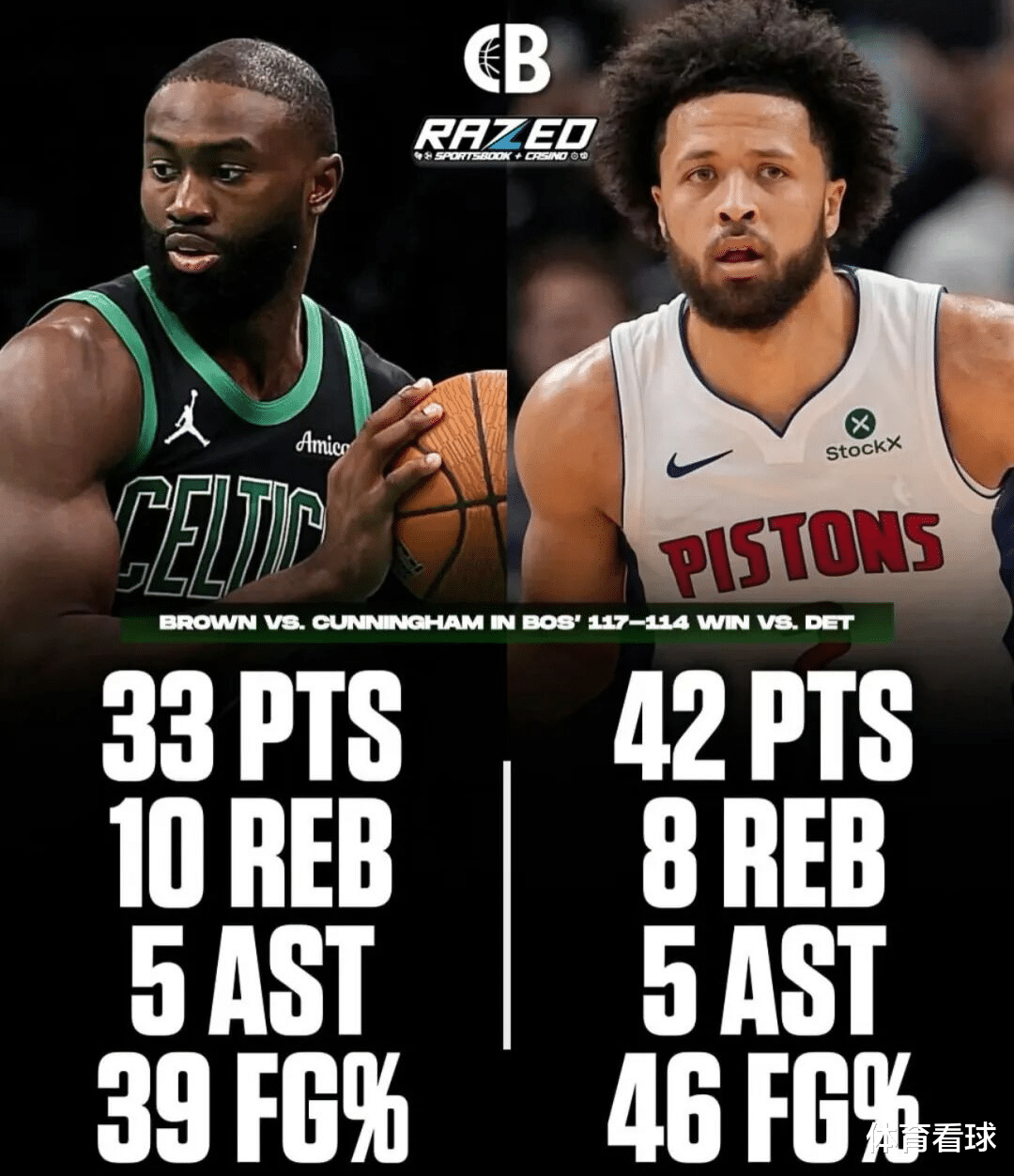 一而再再而三的机会,康宁汉姆都丢了,他距离成长为超级球星,或许就剩下最后这关键时刻这段路。全场比赛,康宁汉姆出战36分23秒,投篮26投12中,其中三分球9中4,罚球16罚14中,空砍42分8篮板5助攻1抢断1盖帽,外加4失误3犯规;这场强强对话,这份成绩单已经足够好,美中不足就是关键时刻掉链子了。