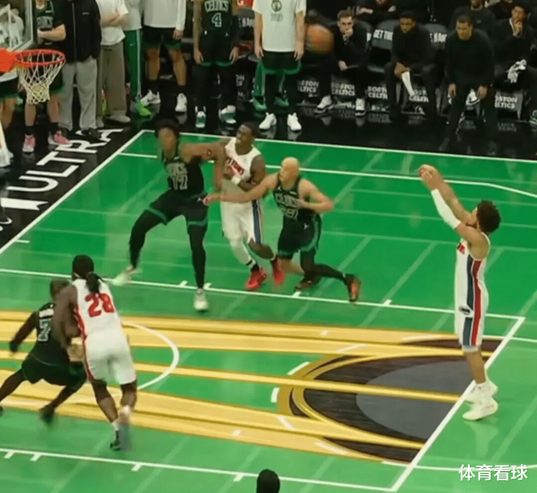 在比赛还有30秒时,活塞当家球星康宁汉姆三分球出手“三不沾”,紧接着在17秒时,背后运球失误把球甩出界;点球战术,凯尔特人两罚全中;在比赛还有4.4秒时,已经没有暂停的活塞底线发球,康宁汉姆持球快攻的前场,孤注一掷投篮被对手犯规,三罚全中就能追平比分续命!