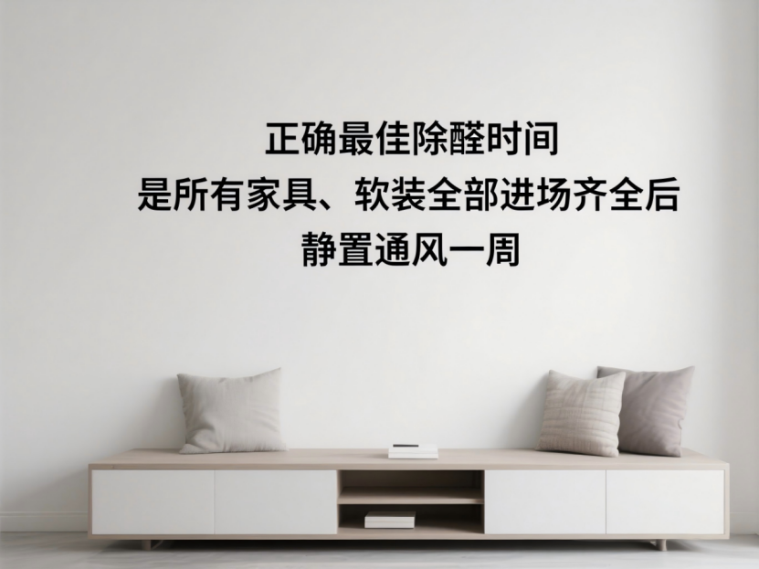 新房装修完工,看着焕然一新的家,满心欢喜准备入住,可甲醛问题却成了拦路虎。不少业主都有这样的疑惑:到底什么时候除甲醛效果最好?身边人大多说,要等夏天高温天,或是北方冬季供暖后再处理,这时候甲醛挥发多,除醛才管用。但今天要告诉大家,这个流传甚广的说法,其实是个大大的误区,很多人都把两个关键概念弄混了!之所以大家觉得夏季和供暖后是除甲醛黄金期,核心原因是把甲醛释放量和除甲醛效果划上了等号。夏季气温高,冬季供暖后室内温度飙升,这两个时间段有个共同特点:温度升高会大幅加快甲醛的释放速度,室内甲醛浓度瞬间升高,异味刺鼻,肉眼和感官都能清晰察觉到污染问题。正是因为甲醛变得“看得见闻得到”,大家就误以为这时候除醛效果最佳,可实际上,除醛效果和甲醛释放速度,根本没有直接的因果关系。想要弄明白最佳除醛时间,首先要搞懂甲醛释放的底层逻辑。甲醛藏在装修材料、家具板材、涂料胶水、软装布艺里,它的释放速度主要受室内温度、湿度和空气中甲醛浓度影响,温度越高、湿度越大,甲醛释放就越迅猛。但新房内所有甲醛释放源的甲醛总存量是固定不变的,不会因为时间、季节改变而增多,只会随着自然挥发慢慢减少。而科学的除甲醛工作,核心是减少甲醛总存量,而非单纯应对高浓度释放。以专业的除醛工艺为例,比如动态平衡法,就是从两大核心维度入手治理:一方面针对不同类型的释放源,用不同原理的产品搭配专业物理工艺,分层次、系统化处理,从源头减少甲醛总含量,从根本上降低甲醛的挥发速度和数量;另一方面使用长效分解产品,持续分解空气中游离的甲醛,让室内甲醛浓度长期稳定在安全标准内。这种人工干预的方式,能在短期内达到自然挥发数年的除醛效果,由此可见,影响除醛效果的唯一因素就是时间,干预得越早,作用时间越长,甲醛总存量就越低,室内环境就越安全。很多人踩坑,要么是盲目等高温季,耽误了最佳治理时机;要么是装修完立刻动手,反而达不到理想效果。这里要明确两个关键时间节点,以及两个避坑要点,帮大家精准抓住除醛黄金期。首先,绝对不是装修完立刻除醛。刚装修好,所有家具、软装刚进场,材料表面还附着大量运输、包装过程中产生的游离态甲醛,这部分甲醛很容易通过简单通风挥发掉。如果此时立刻做专业除醛处理,不仅会浪费治理成本,还会因为表面游离甲醛干扰,无法精准处理板材、胶水内部的根源性甲醛,导致治理效果大打折扣。正确的最佳除醛时间,是所有家具、软装全部进场齐全后,静置通风一周。这一周的时间,能让材料表面的附着态甲醛充分挥发完毕,剩下的就是板材内部、胶水层里的顽固性甲醛,这时候再进行专业除醛处理,才能直击污染源头,把甲醛总存量彻底降下来,治理效果才会更彻底、更长效。