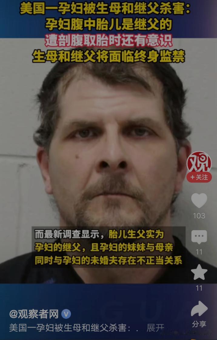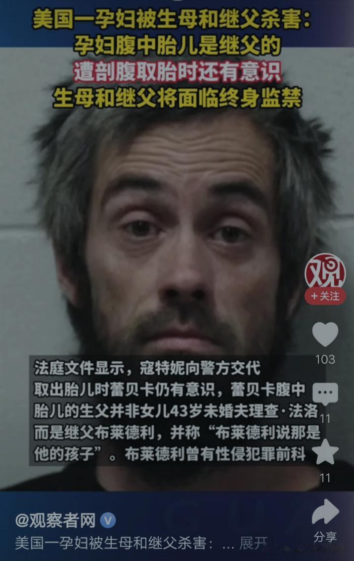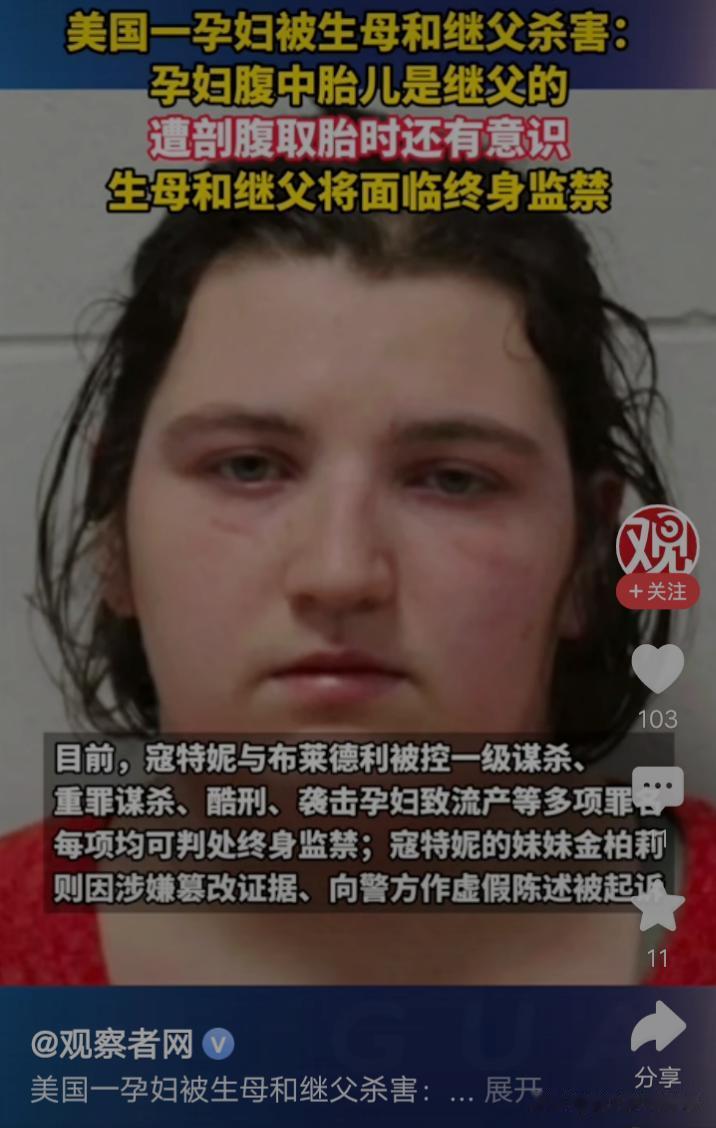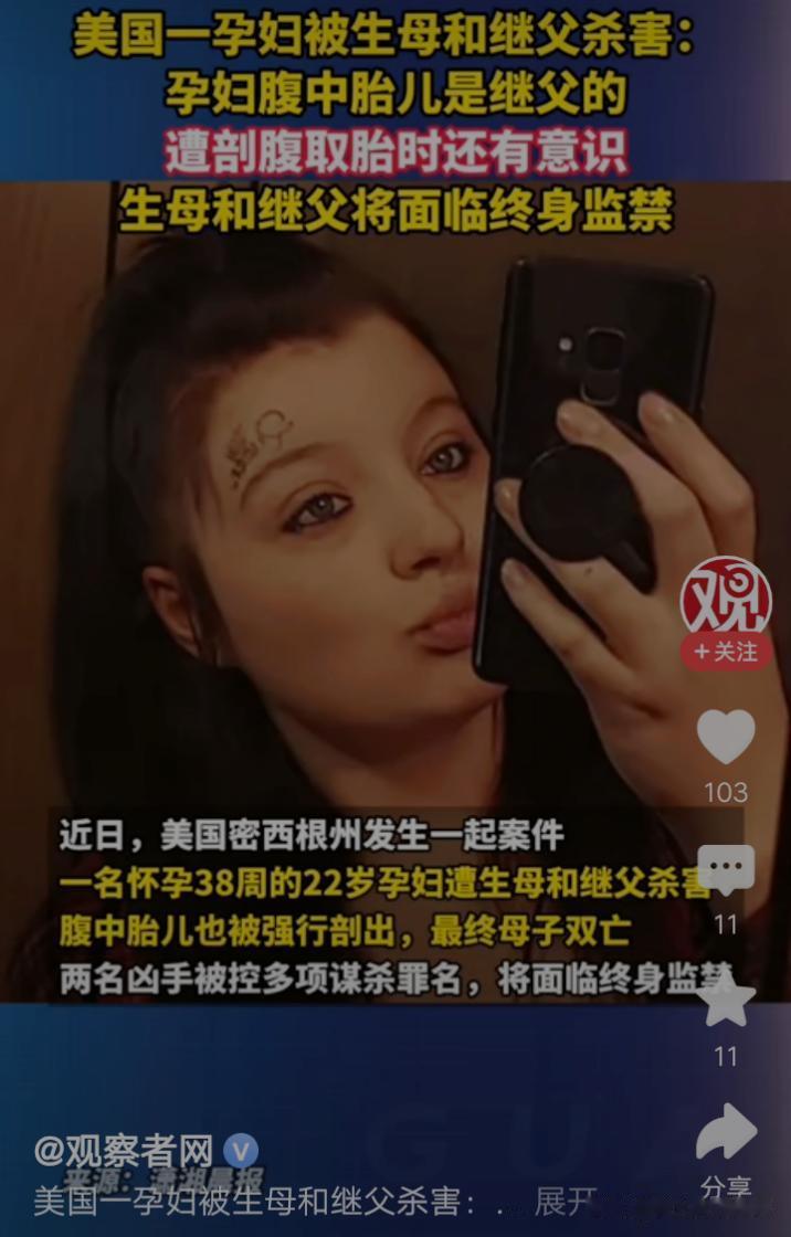 美国密西根州,怀孕38周,22岁孕妇蕾贝卡,被母亲寇特妮和继父布莱德利,从父亲家骗走,带到某森林公园深处,对她强行剖腹取婴,致母子双亡。