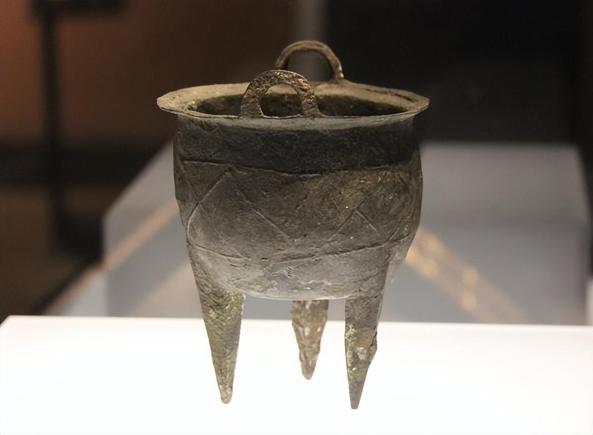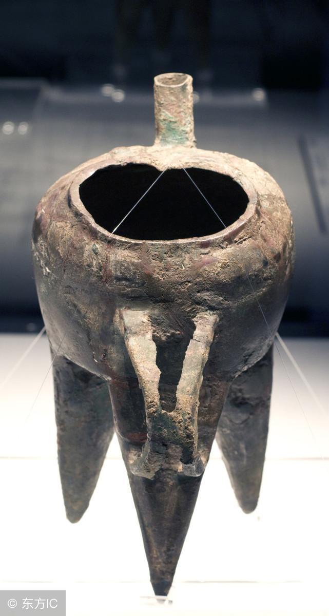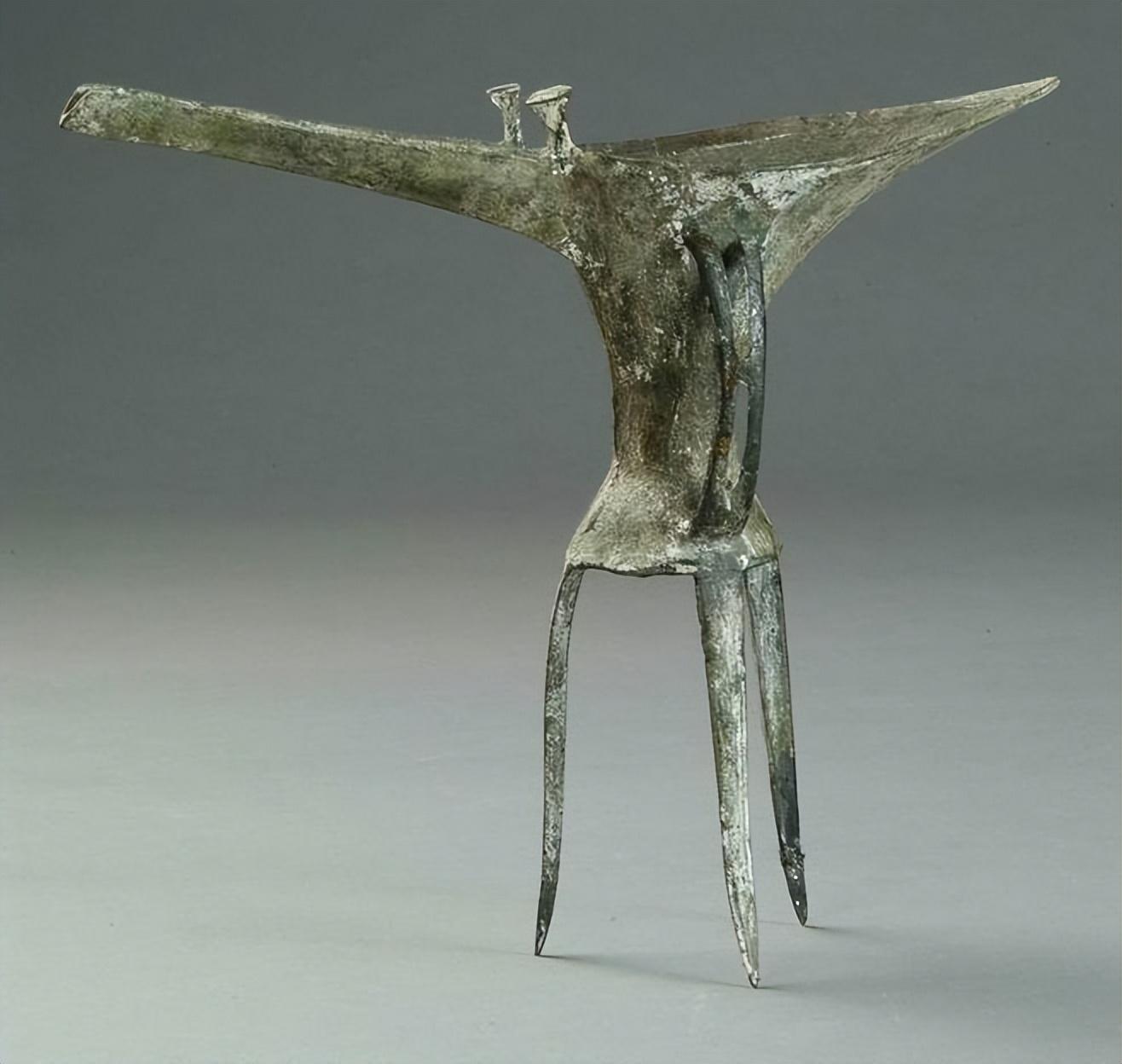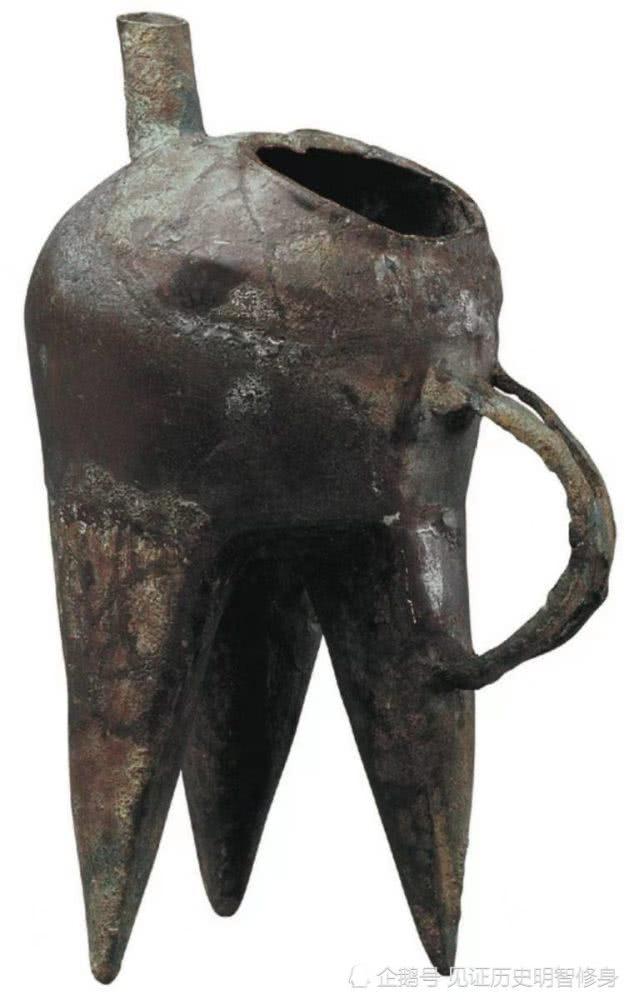 它是我国目前考古发现的,时代最早的青铜器之一,高22.5厘米,长31.3厘米,壁厚0.1厘米,窄长流、尖长尾,细腰,瘦腹,三棱锥状足,腰腹正面装饰5颗乳钉。