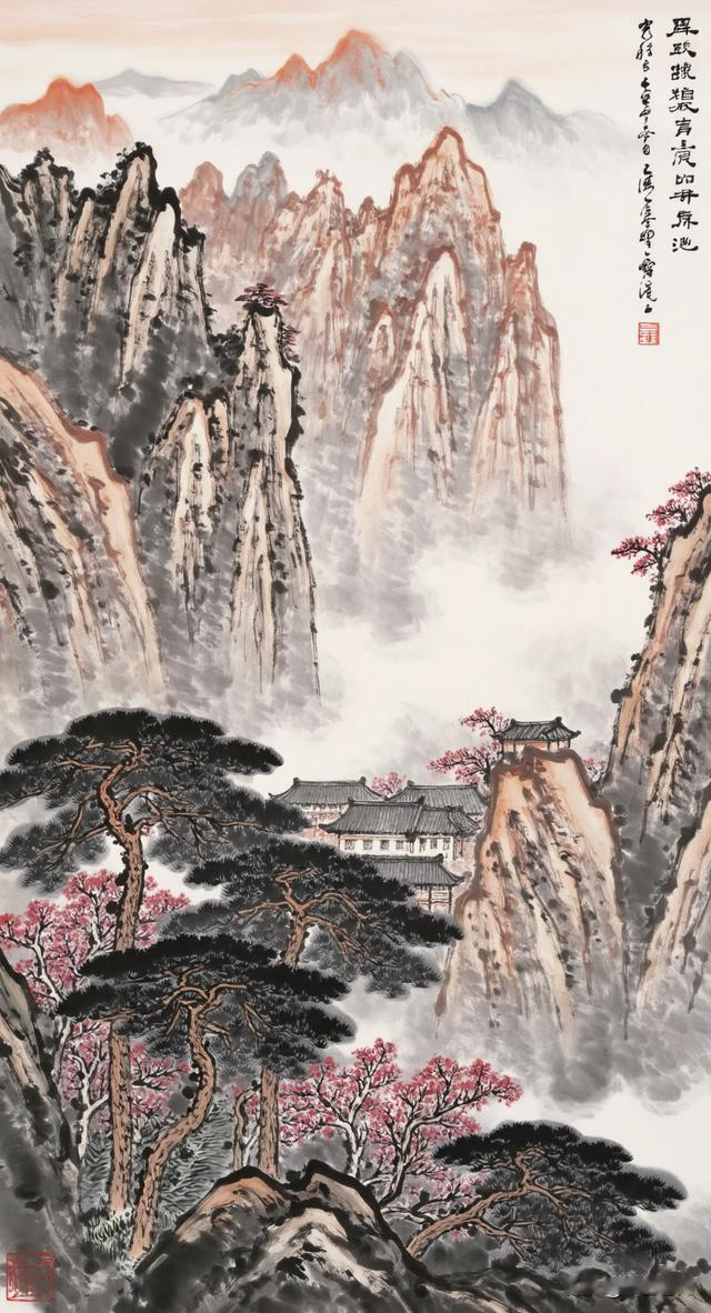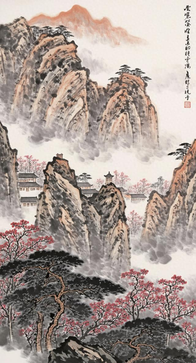 《山景幽居》山景清幽映晚红,松生崖畔意从容。山居隐在烟霞处,静忆前尘梦未空。