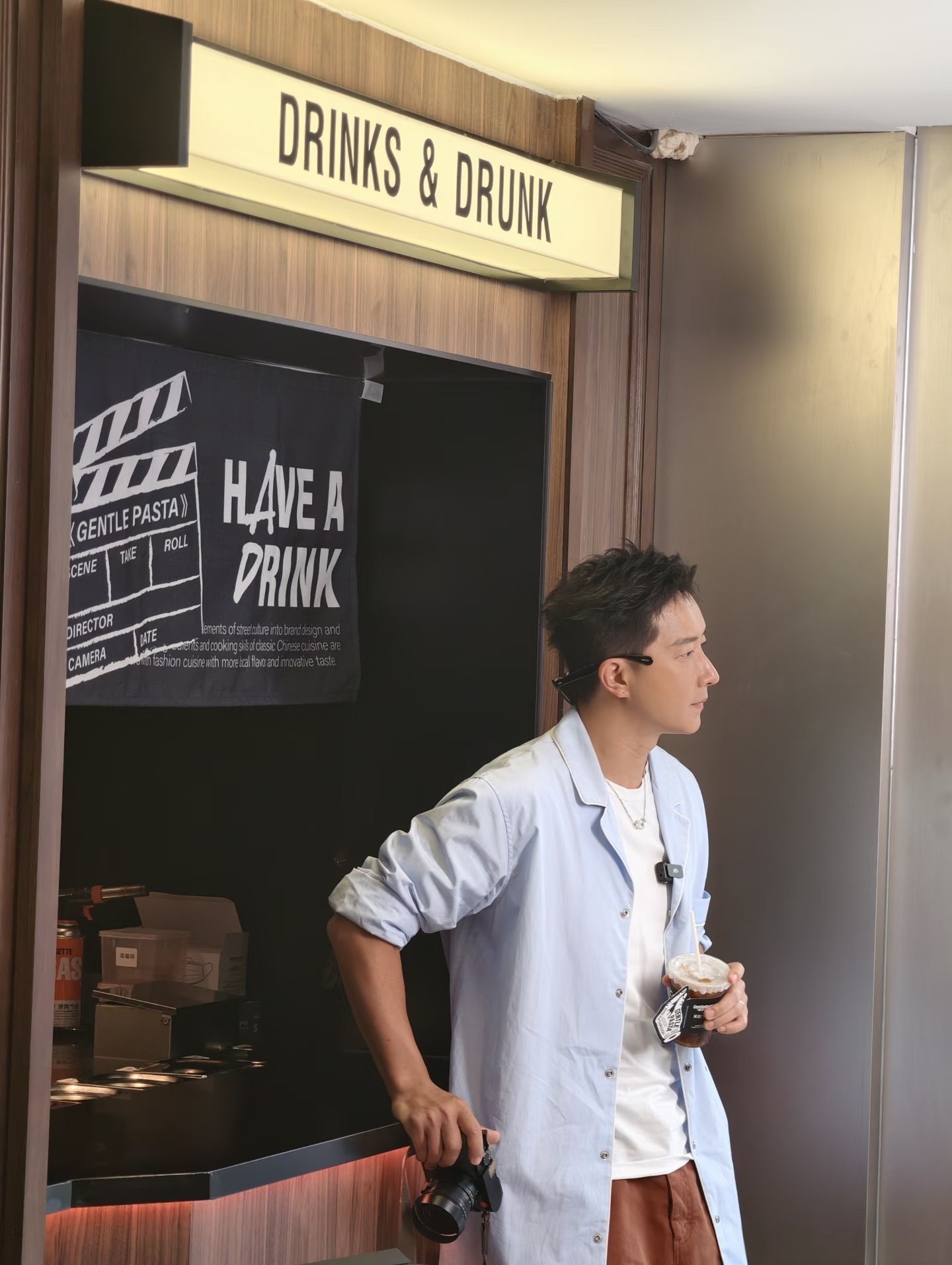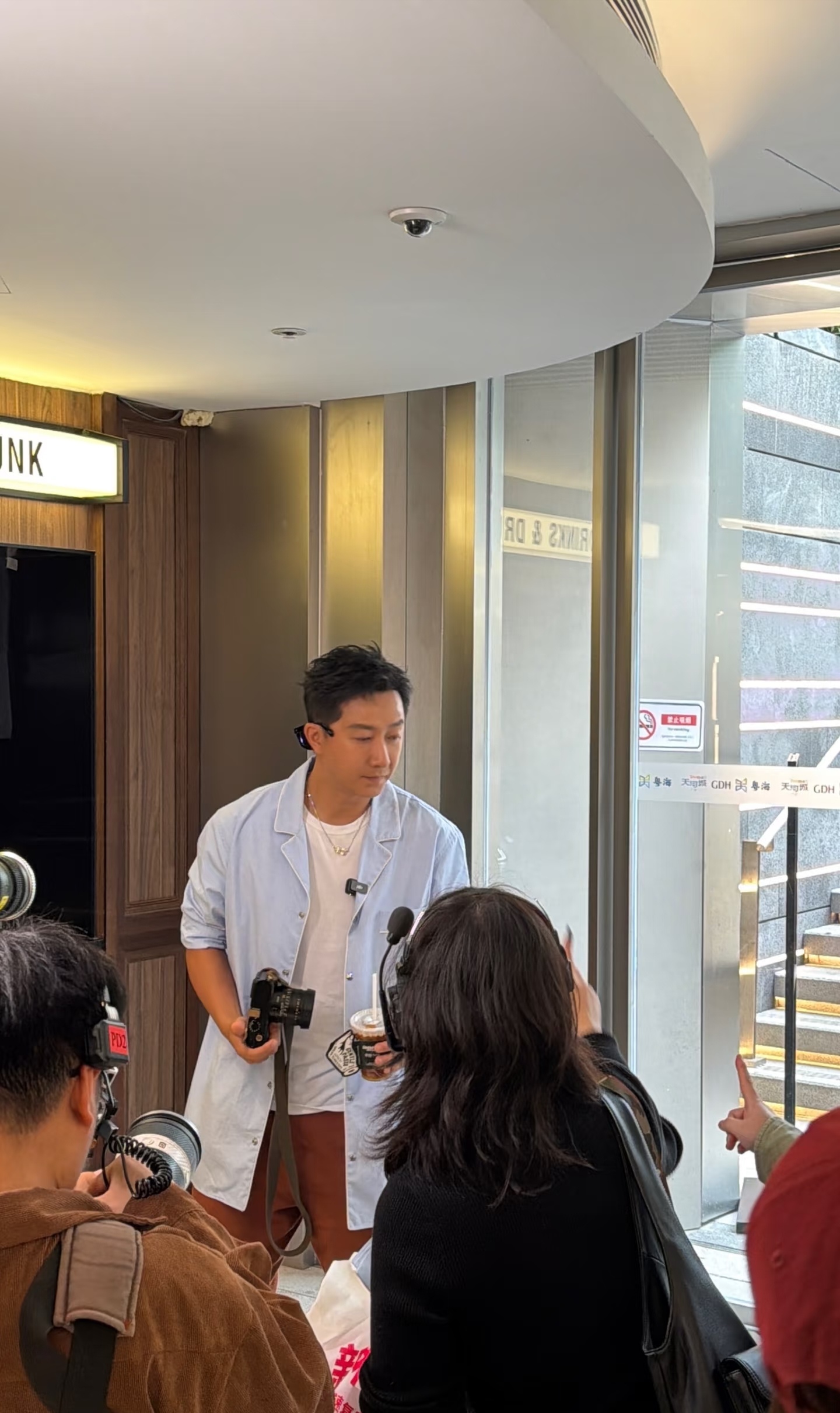韩庚天河城被偶遇,穿蓝衬衫帅气!