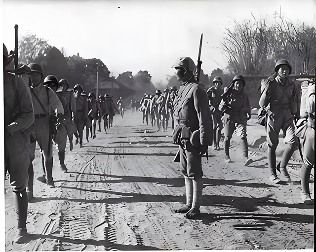 第5师团被称为“鲤师团”,是日军中最著名的机械化步兵师团之一。作为侵华战争的急先锋,第五师团参与了从中国战场到太平洋战场的多个战线,包括太原会战、南宁战役、马来亚战役和新加坡战役。在各个战役中,该师团均展现出强大的进攻能力和战斗技巧,尤其在占领新加坡期间,成功击败了英军,夺取了该岛屿的控制权。在全面抗战前期,第五师团也被称为板垣师团。在二战后期巴布亚新几内亚的莫尔兹比港攻坚战中,该师团陷入了美澳联军的包围,由于粮草和后援全部中断,几乎全军覆没。幸存者在朝鲜平壤获得新兵补充后,最终在印度尼西亚的塞兰岛向盟军投降。