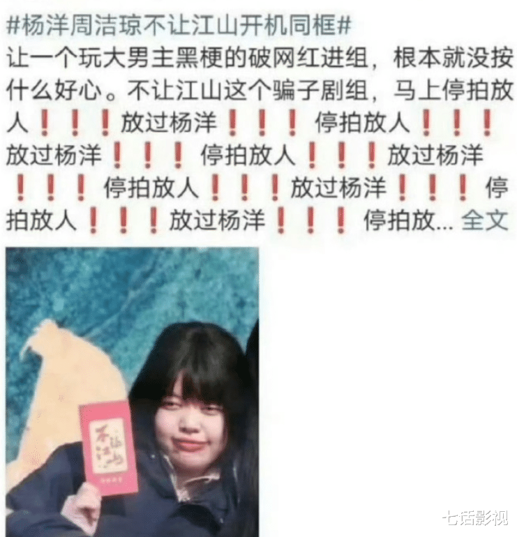 这中间还有一个“番外”,网红厚本前期高调宣布自己进组《不让江山》,但杨洋粉丝发现她2年前曾玩梗《我的人间烟火》,选择抵制她进组。