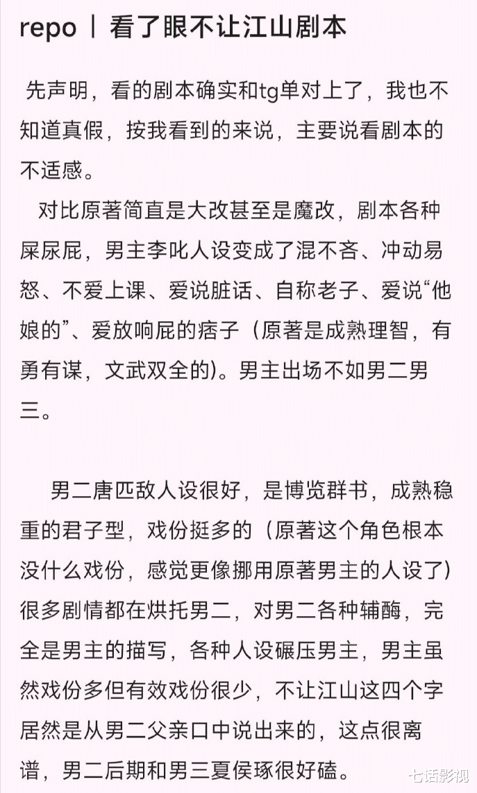 导火索是剧组官宣后网上流出了一版《不让江山》的剧本。