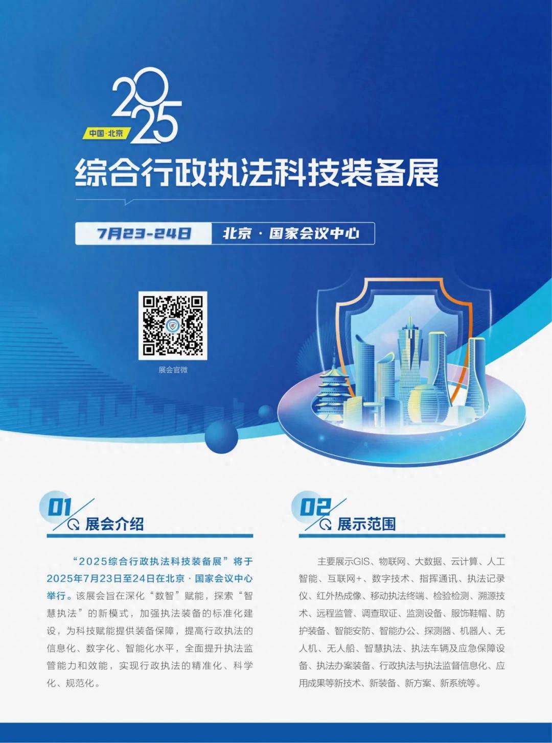 “2025综合行政执法科技装备展”将于2025年7月23日至24日在北京·国家会议中心举行。
