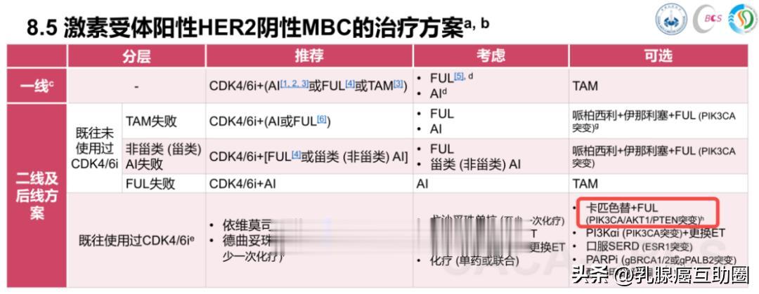 ■ 对于既往接受过CDK4/6抑制剂治疗人群:卡匹色替联合方案的疗效数据依旧出色,为患者带来显著的PFS获益(7.0个月 vs 2.6个月),这意味着卡匹色替具备克服CDK4/6抑制剂耐药的实力。