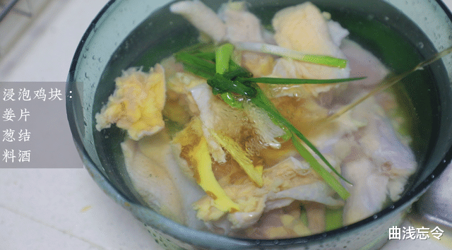 鸡块浸泡:姜片3片、葱结1个、料酒20g
