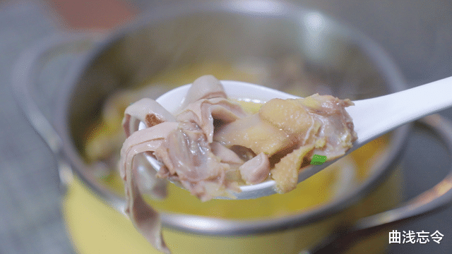 区别于常见的奶白色的胡椒猪肚鸡汤,用黄油鸡炖出来的汤色是偏金黄色的,更加油亮香味很足!比较推荐剩的汤再继续烫煮一些绿叶菜或者用来煮面条米粉类也非常好吃!