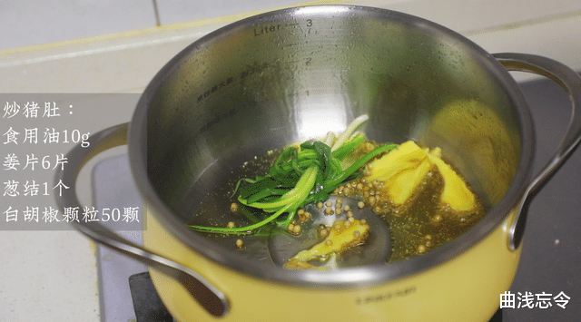 炒猪肚:食用油10g、姜片6片、葱结1个、白胡椒颗粒50颗