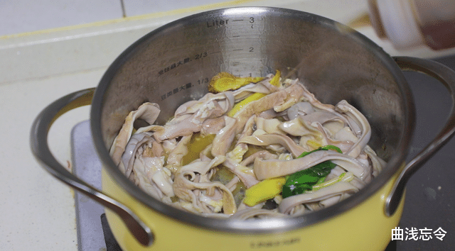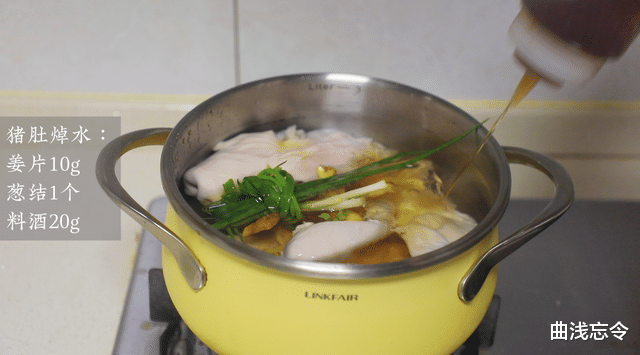 猪肚焯水:姜片10g、葱结1个、料酒20g