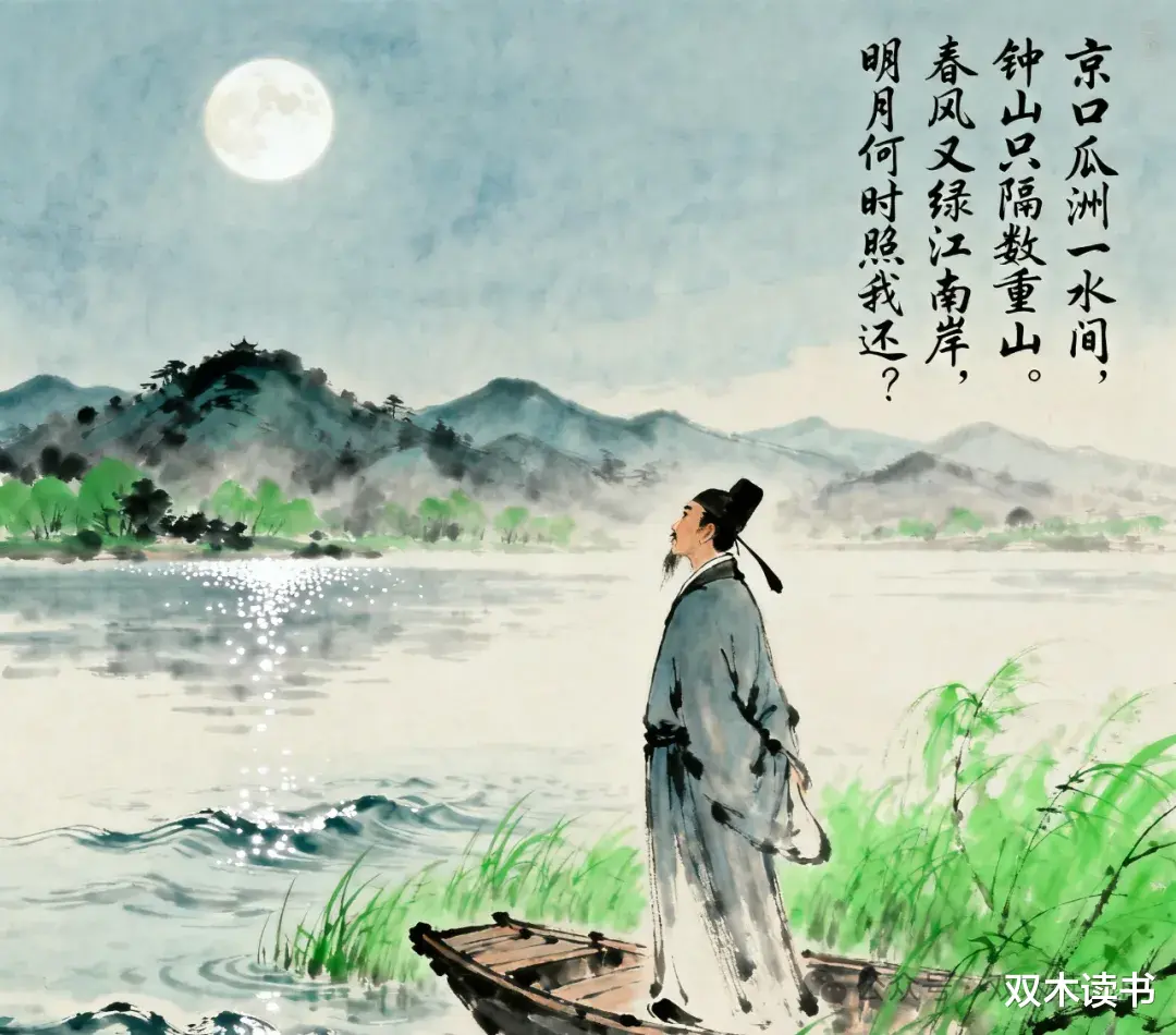首句 “京口瓜洲一水间” 的 “一水间” 太妙 —— 不是 “一水隔”,是 “一水之间”,一个 “间” 字把 “隔江相望” 的距离写得既近又远。