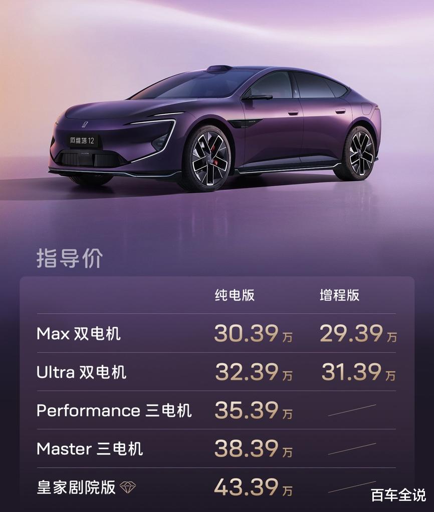 新阿维塔12定位未来智能豪华轿车,面向时代精英人群,主打豪华、智能、旗舰级出行体验。新车全系标配12项顶格配置,涵盖华为乾崑智驾全系统、太行智控2.0、35.4英寸4K全景星环屏、25扬英国之宝音响、全车9安全气囊等,百万豪车顶配选装功能悉数标配。同时推出六大限时购车礼遇,购置税补贴礼遇、配置升级礼遇、老车主升级礼遇、ADS高阶包抵扣权益、贷5年首2年0息金融礼遇、万元用车无忧礼遇,入门即满配,彻底打破豪华门槛。