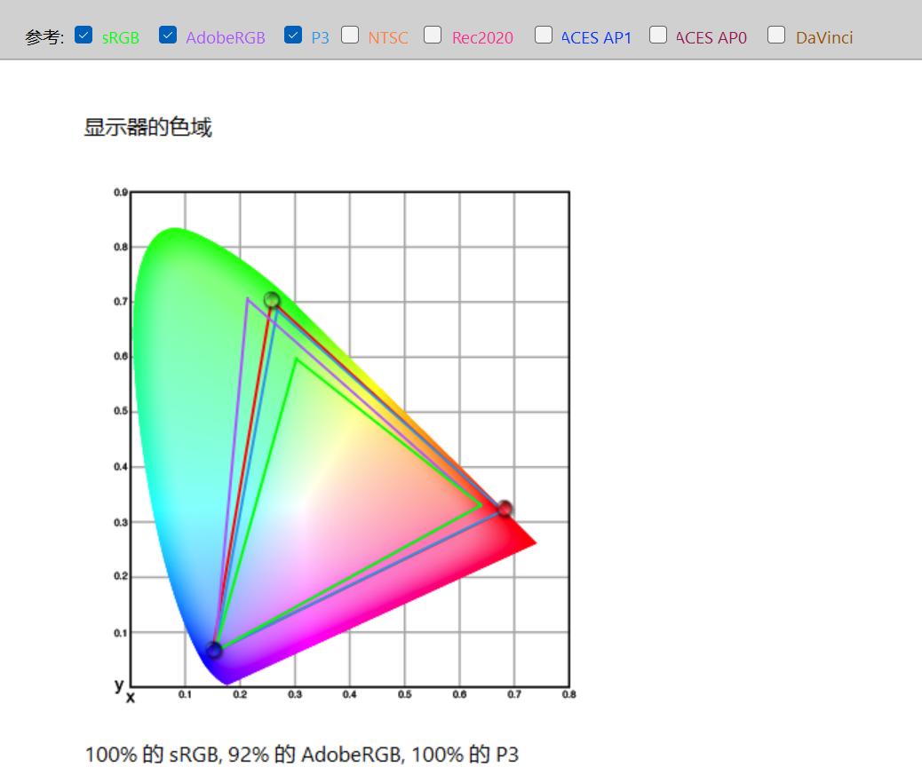 经实测,EHOMEWEI Q1G Pro的色域覆盖非常优秀,覆盖了sRGB与P3色域均得到了100% 的覆盖,即使是更为严苛的AdobeRGB RGB色域,其也拥有92%的色域覆盖了,其优秀的表现甚至超过了绝大多数游戏本的原装屏幕。