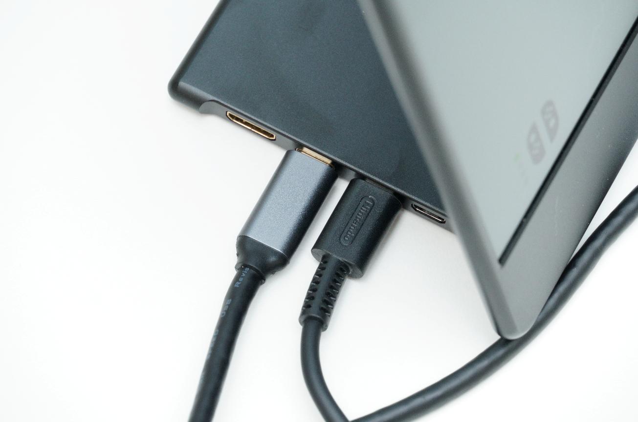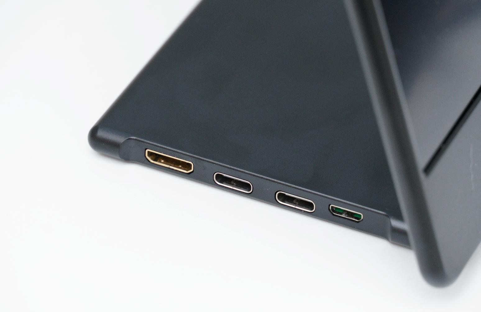先来看左侧的主接口区域:从左到右分别是mini-HDMI、Type-C PD供电接口、全功能Type-C接口、辅助供电的micro USB接口。