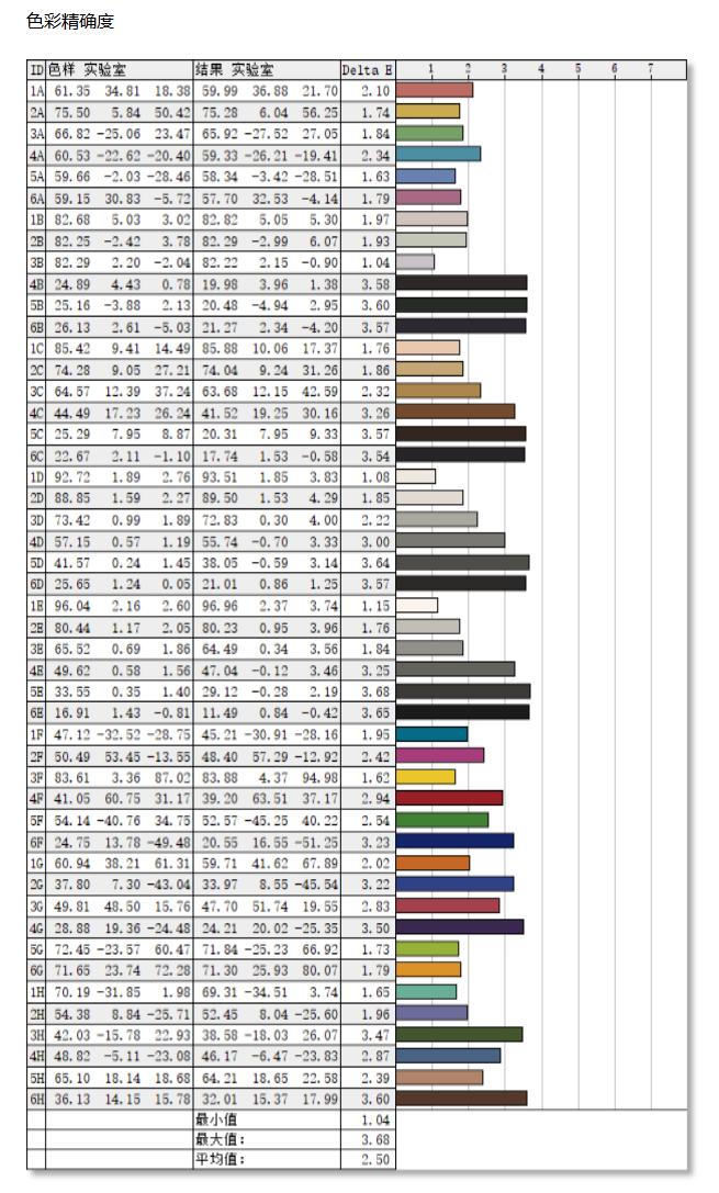 色准方面,其平均ΔE为2.5,最大值3.68,表现得属于中规中矩。