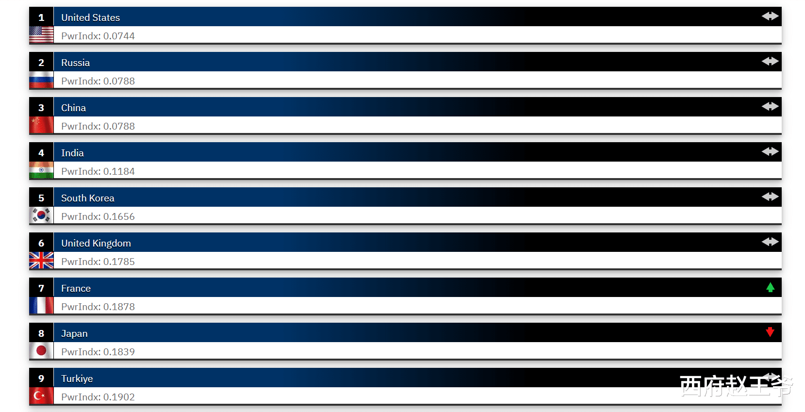 事实上这样的拱火操作,美国不仅仅是用在印度身上,像韩国也是一大代表。比如美国有一家叫“全球火力”的军事网站,在其给出的2025年全球军事实力排名中。就把韩国给排到了第五名,比之英法以及日本都要高出一头。