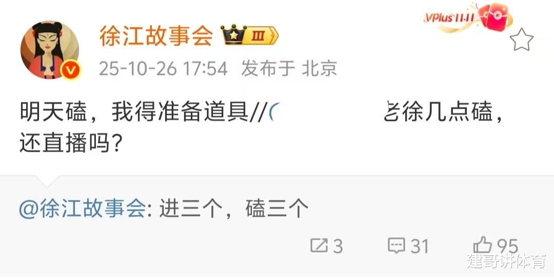 当比赛的结果最终盖棺定论后,很多泰山球迷也来到徐江的个人社交下,希望徐江能够实现承诺,而徐江也没有回避,发文称泰山队进了3个球,他也将磕3个,不过今天无法承诺兑现,因为他还需要准备道具,时间也定在了明天。记者苗原在赛前发文也预测海港队会赢球,泰山球迷也来到苗原的社交下告诉苗原预测错了,苗原的回复似乎有点找理由,他认为海港输球的原因是莱昂纳多伤了。