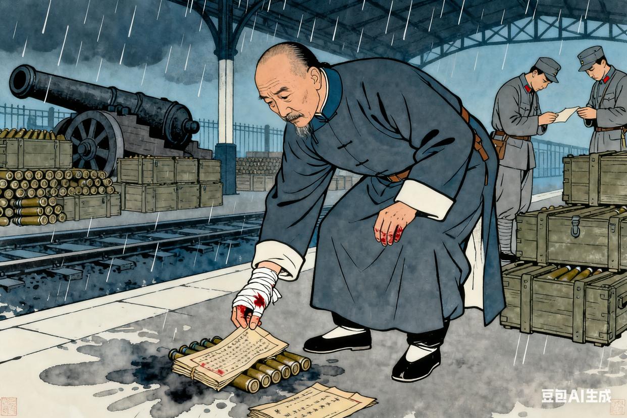 1894年甲午战争爆发,段祺瑞当时在北洋军械局任委员,负责向朝鲜前线转运军火。天津火车站里,到处是堆放的炮弹箱,士兵们扛着箱子奔跑,汗水把军装浸得透湿。他每天熬夜核对军火清单,手指被账本的糙纸划破,渗出血珠,他随便用布条一缠,继续往下算。9月,清军在平壤战败的消息传来,那天晚上下着小雨,他站在火车站的月台上,看着一列列空着的军车开回来,车厢里溅满了泥点,像哭花的脸。一个从朝鲜逃回来的士兵告诉他,前线的大炮因为没有合适的炮弹,只能当摆设,他听着听着,手里的清单掉在地上,雨水很快把字迹晕开。那天夜里,他在办公室里坐了一整夜,桌上的油灯烧尽了最后一滴油,他喃喃自语:“光有技术不行,制度不改,国家还是强不起来。”