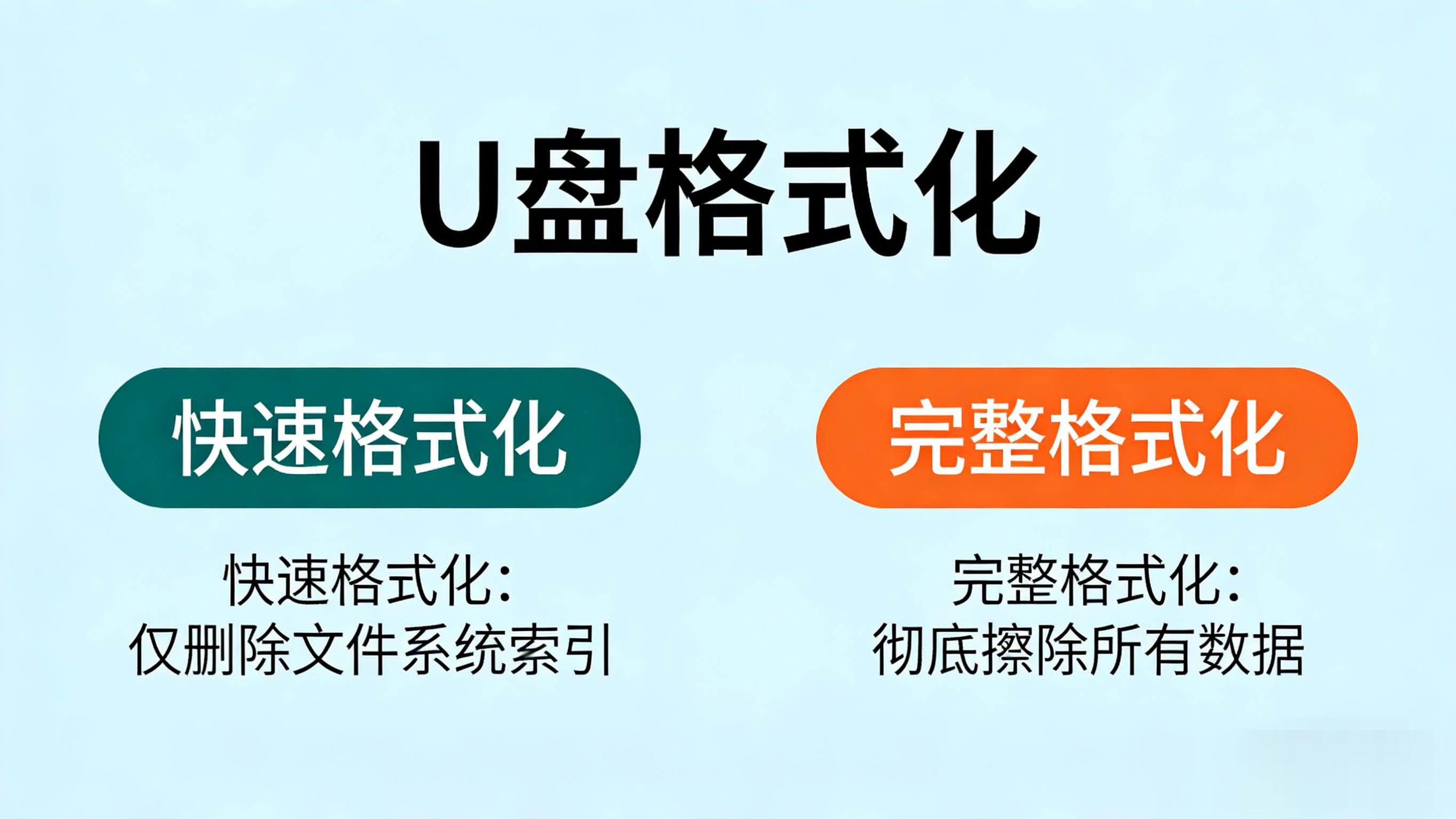 日常使用建议勾选快速格式化,仅清除文件索引,速度快且不损伤闪存芯片;完整格式化会全盘扫描坏道、深度擦除数据,耗时极长,仅U盘出现故障、坏块时使用。