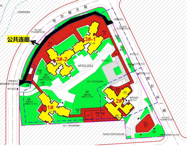 通过空中连廊、地面步道、地下通道把住宅、公园、商业、江岸串起来。