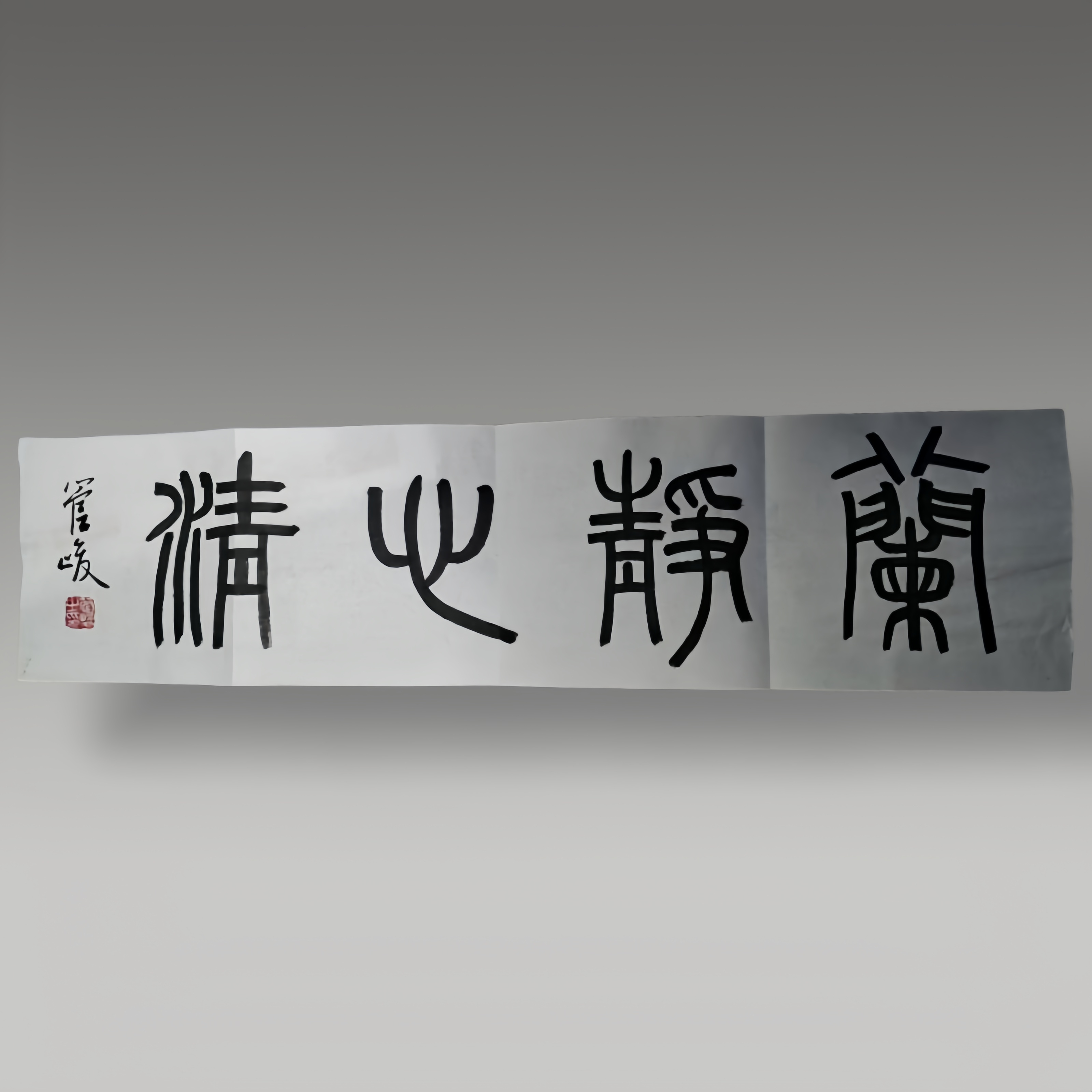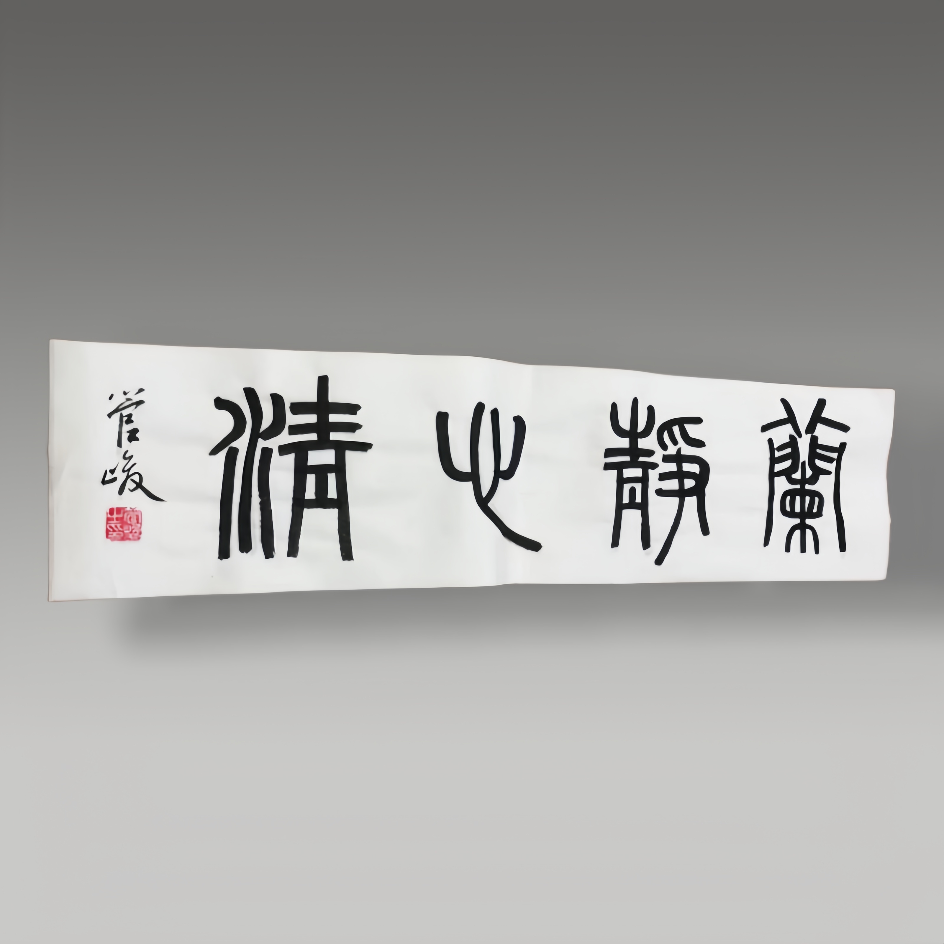 纯金粉书写“精神”二字,笔势豪放洒脱。左侧融入龙纹图腾,线条流畅灵动,金蓝对比强烈是兼具视觉冲击力