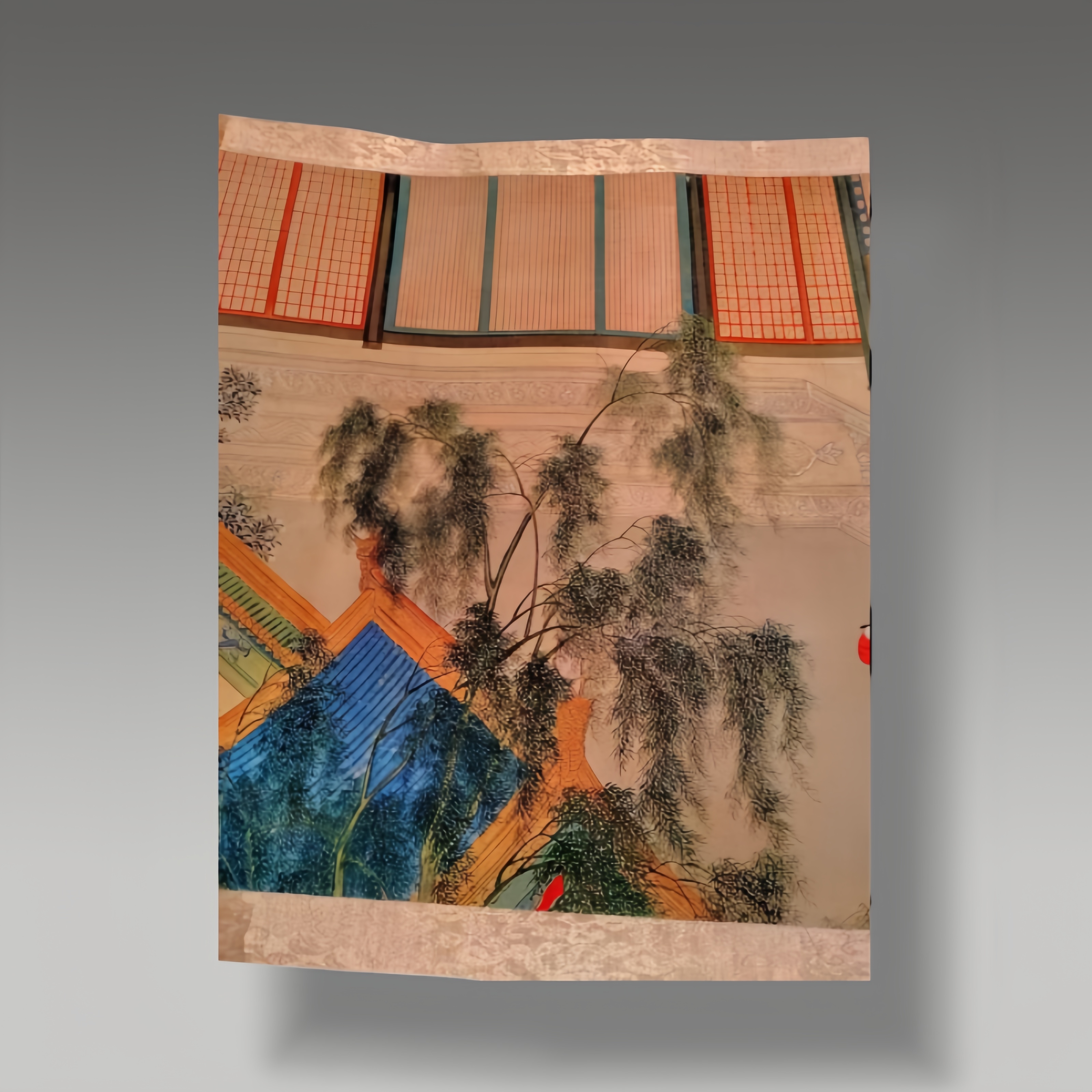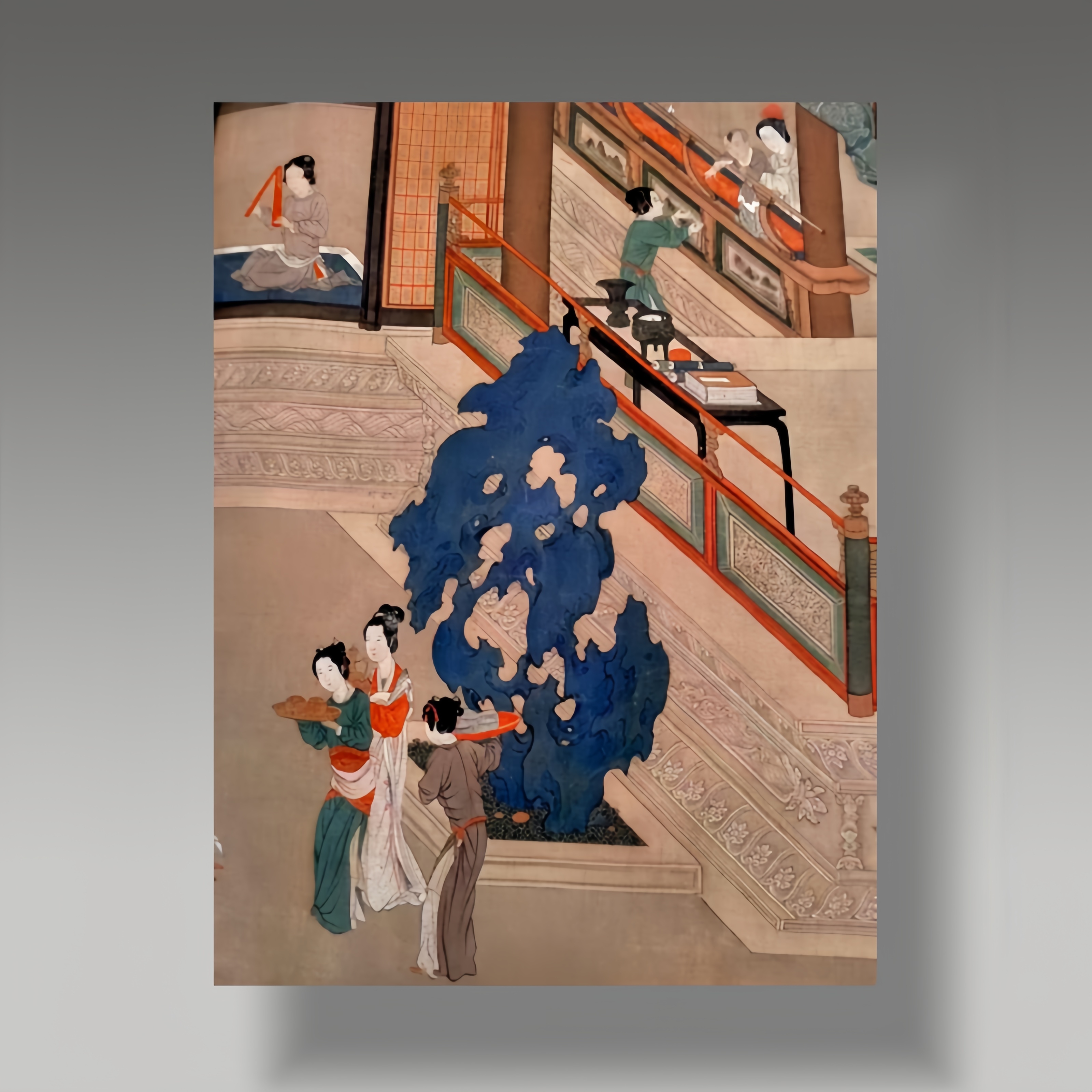 这幅画笔致精工,亭台人物纤毫毕现,设色妍雅,院体画之妙臻于极致