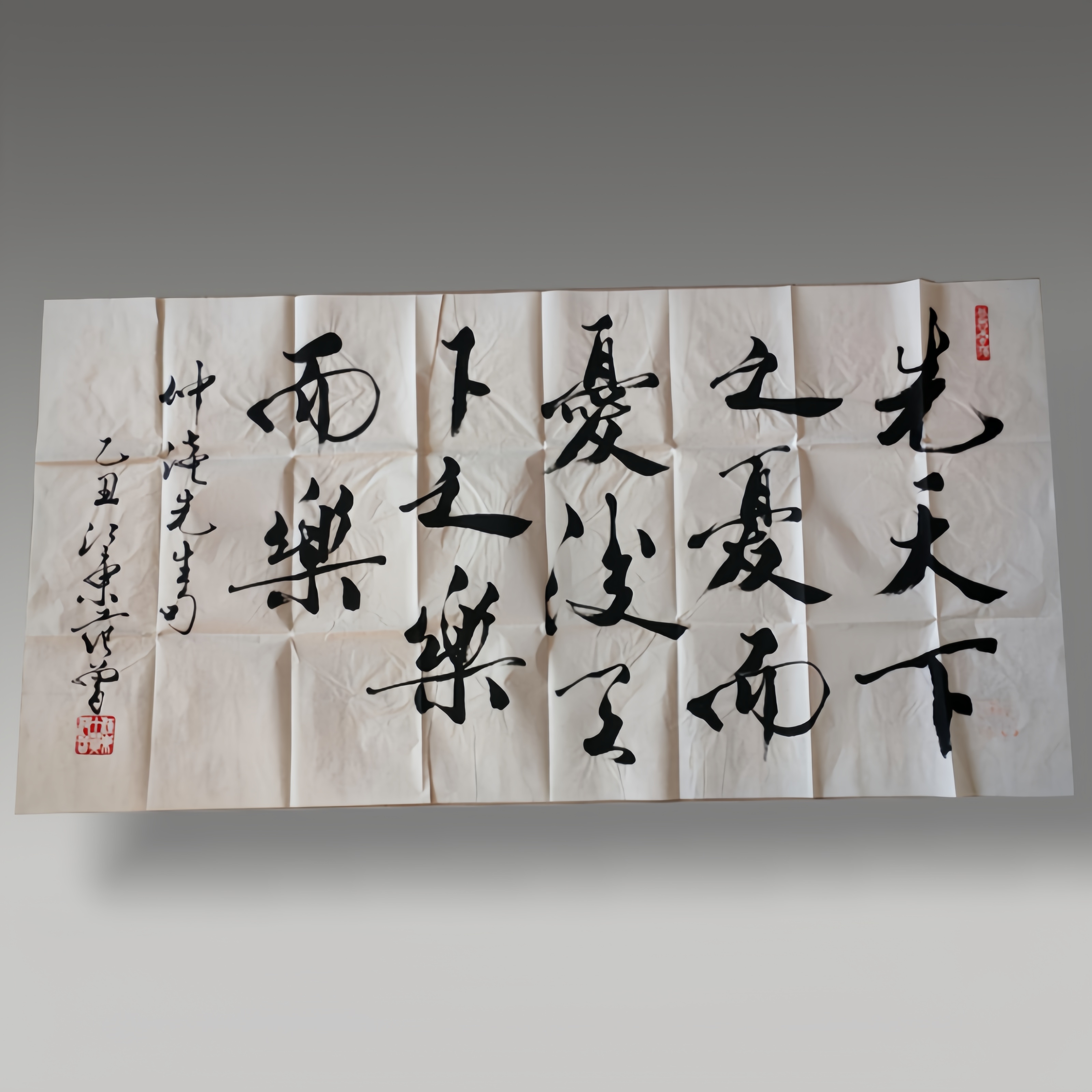 笔力雄健墨气酣畅行草间气韵流转字势开张大气,将“先天下之忧而忧,后天下之乐而乐”的胸襟尽显于笔墨之中