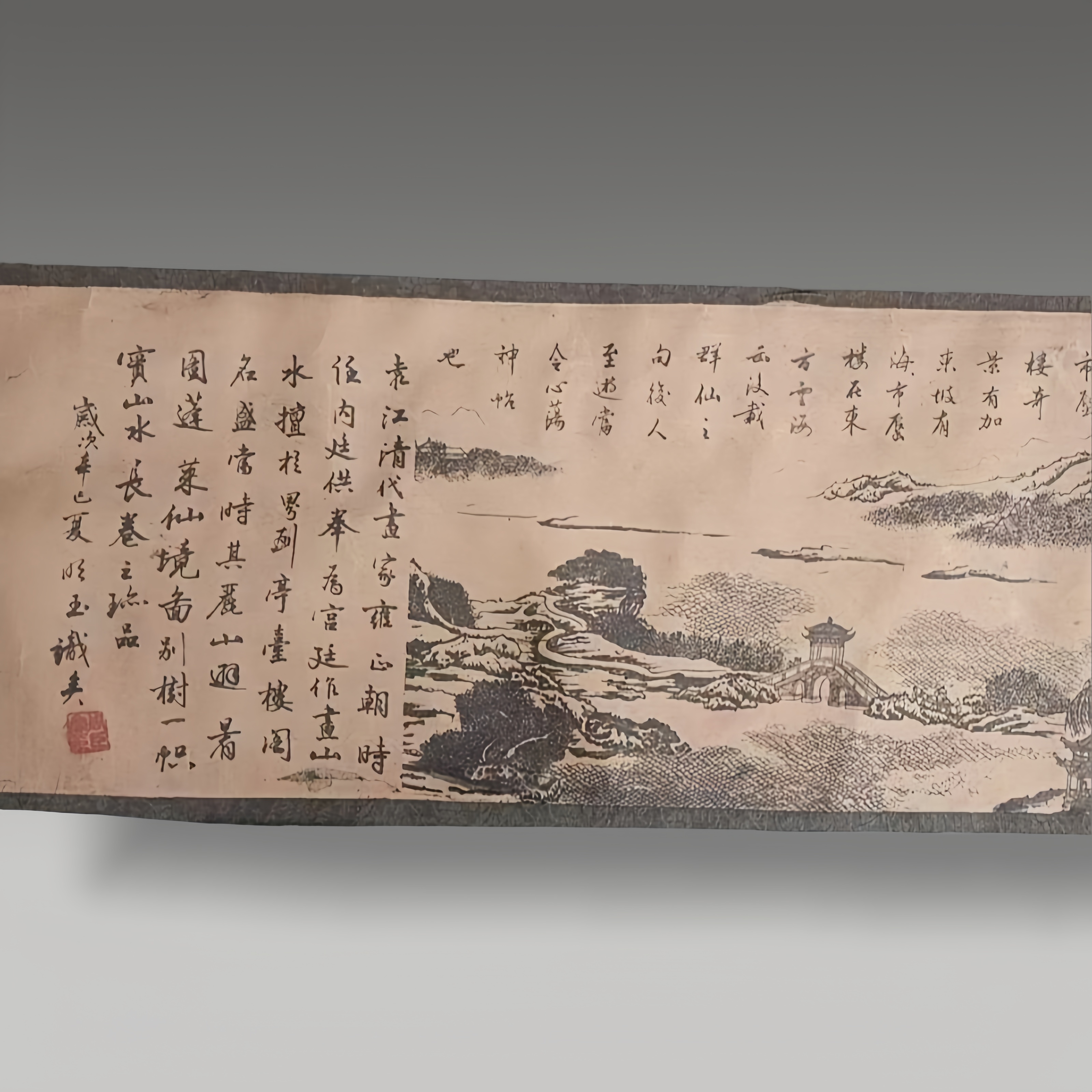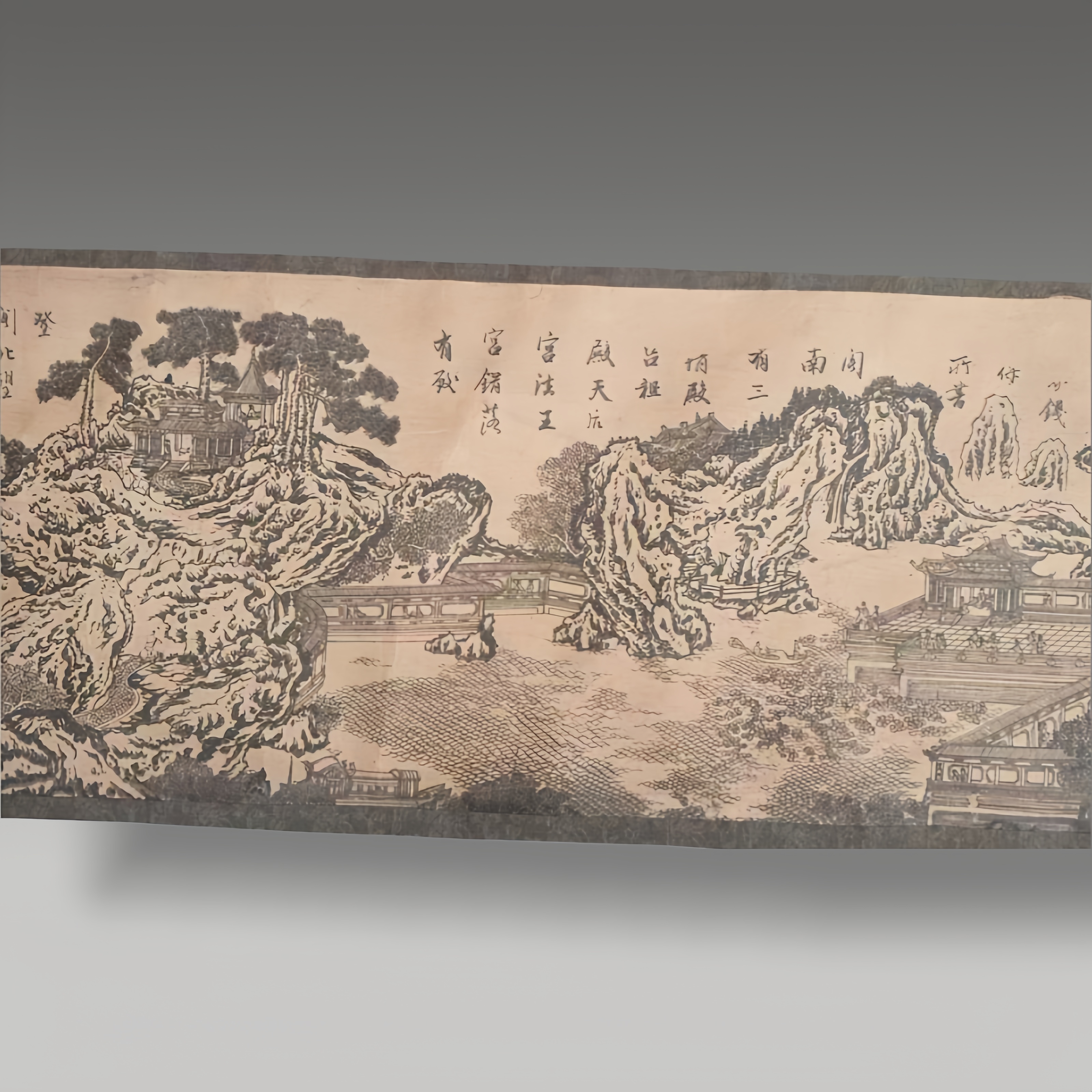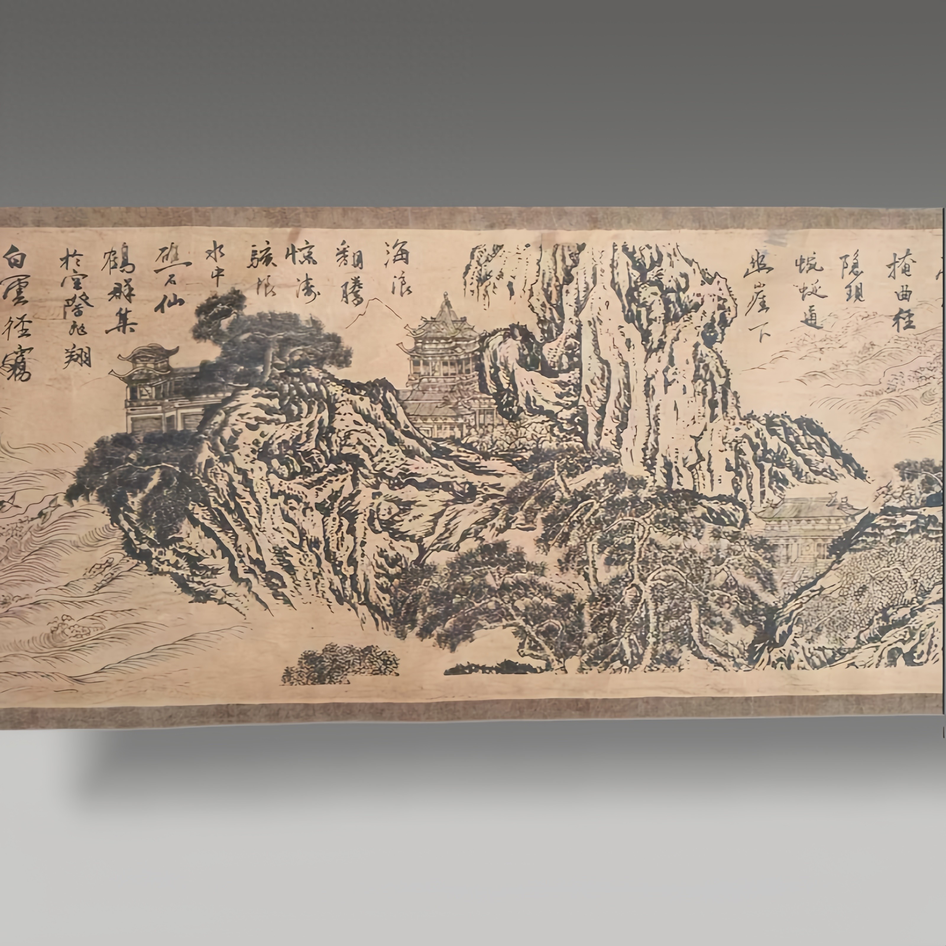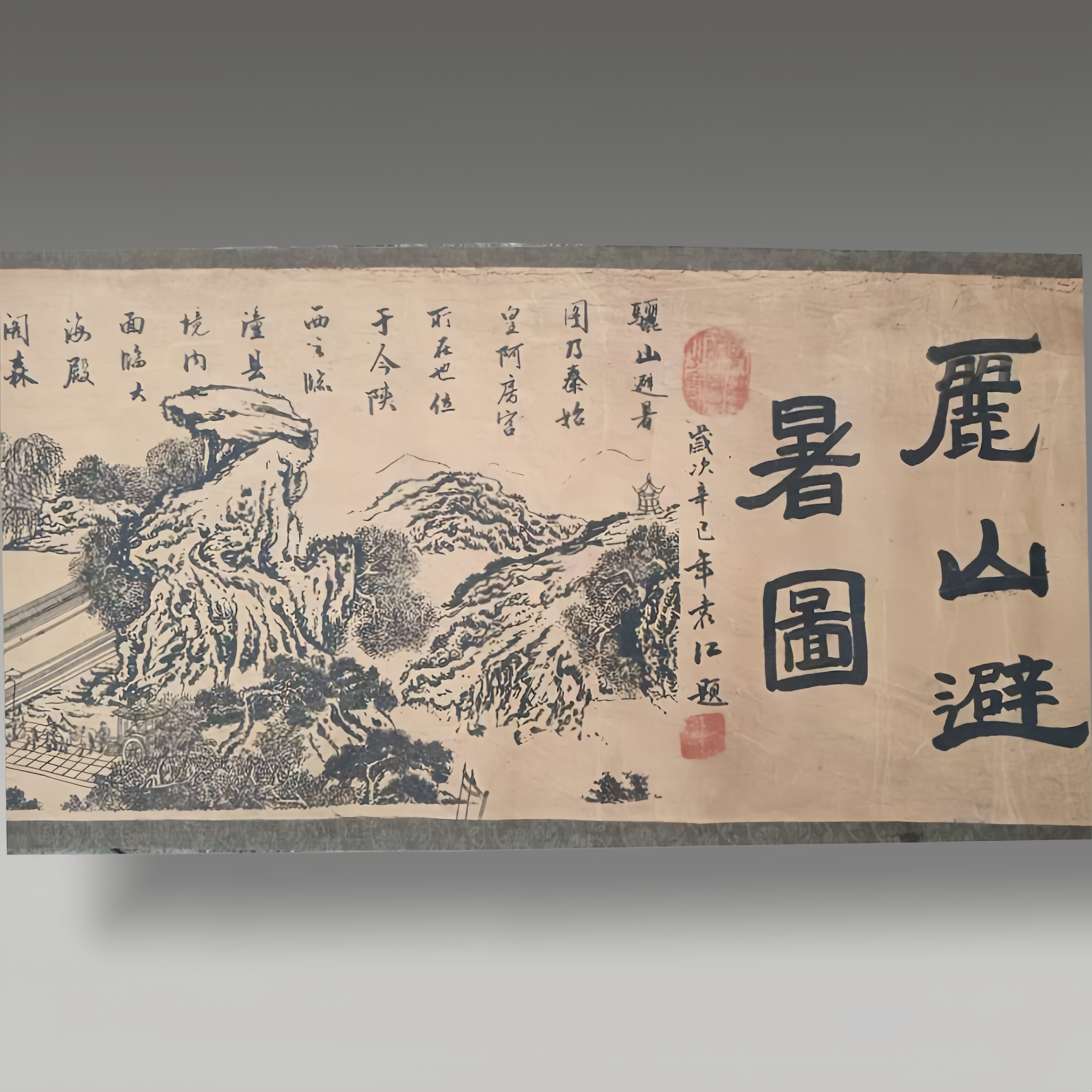此卷笔墨铺展骊山雄姿与蓬莱仙韵,山水皴擦见功底,亭台楼阁藏巧思,古韵扑面,似揽千年胜景入怀