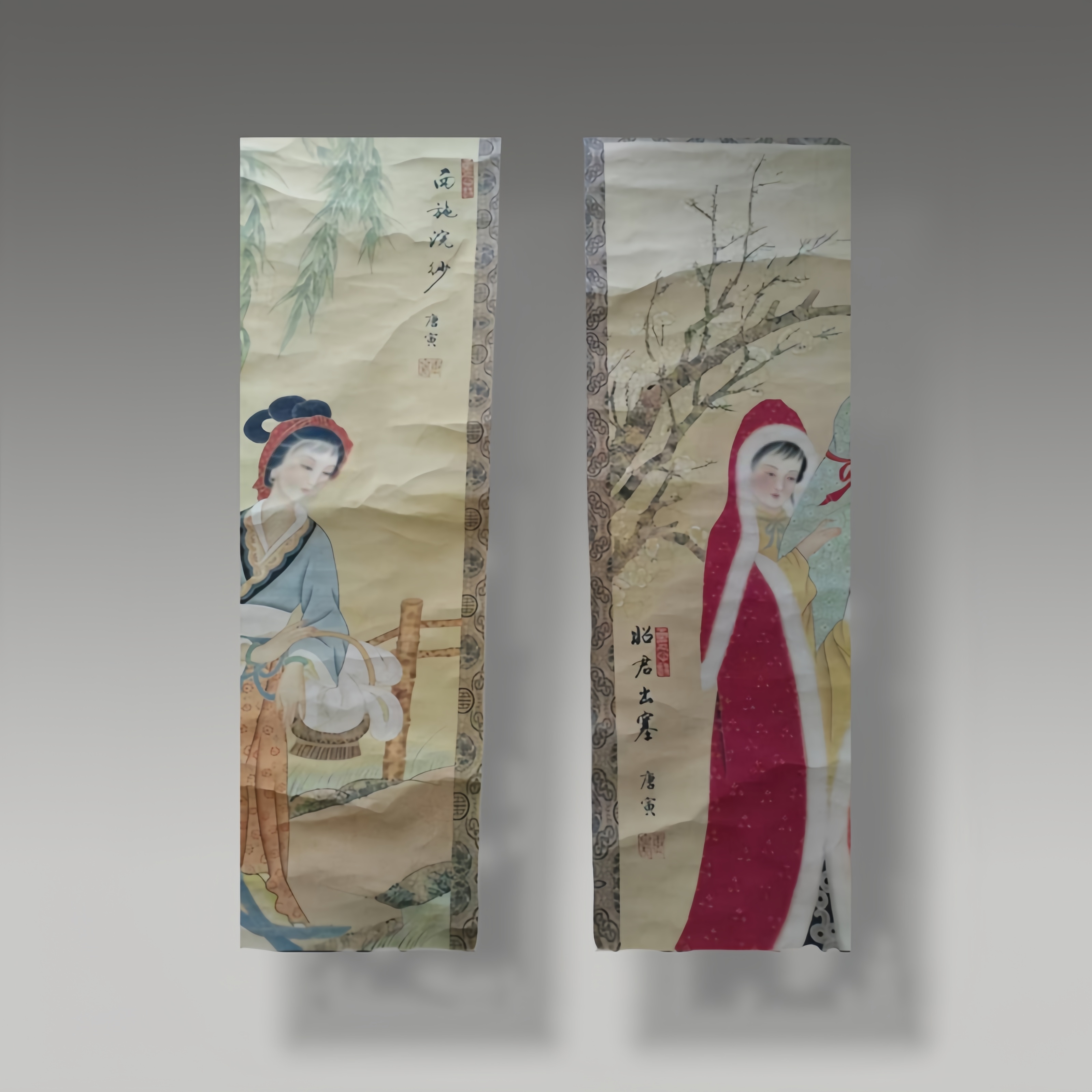 人物神态温婉灵动,色彩雅致柔和,衬景与仕女相映成趣,尽显传统工笔仕女画的雅致韵味