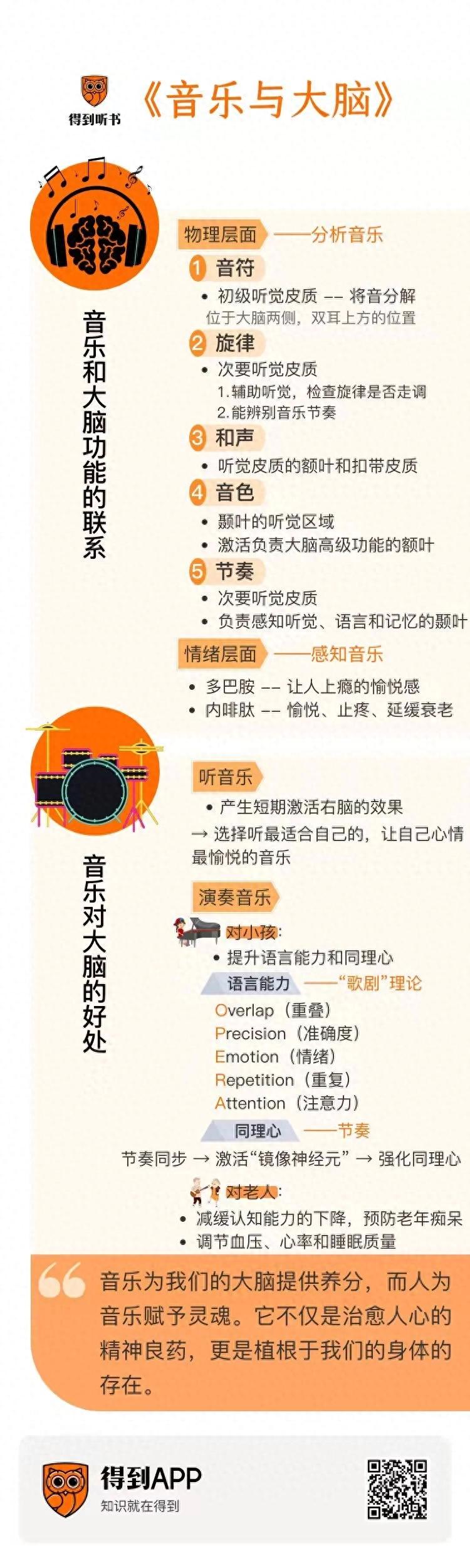 你看,音乐真是很慷慨,它不仅赐予我们快乐,还给了我们更敏锐的感受力和认知力,让我们在人生的每个阶段都时时获益。音乐为我们的大脑提供养分,而人为音乐赋予灵魂。