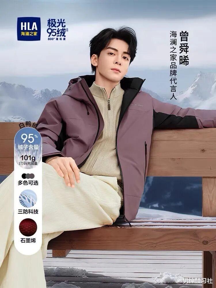 绿色系羽绒服非常适合亚洲男生,穿上显得皮肤更白皙。海澜之家绿色款式也做得很有意思,看起来柔和又高级,适合通勤或周末休闲。曾舜晞的搭配示范,颜色层次分明,整体干净利落,又带一点活泼感。