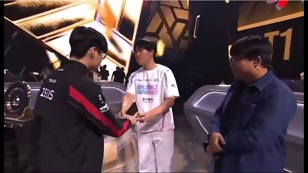 这场BO3,T1先是在首局拿出一套三射手阵容,zeus更是拿出了上单泽丽,很多人也很诧异这么怪的组合能赢吗?结果T1在BLG的那波龙魂团击倒对面4人吃下大龙,虽然后续BLG成功拿下龙魂,但面对近1W的经济差,最终在后续的大龙团被0换4输掉了第一局。