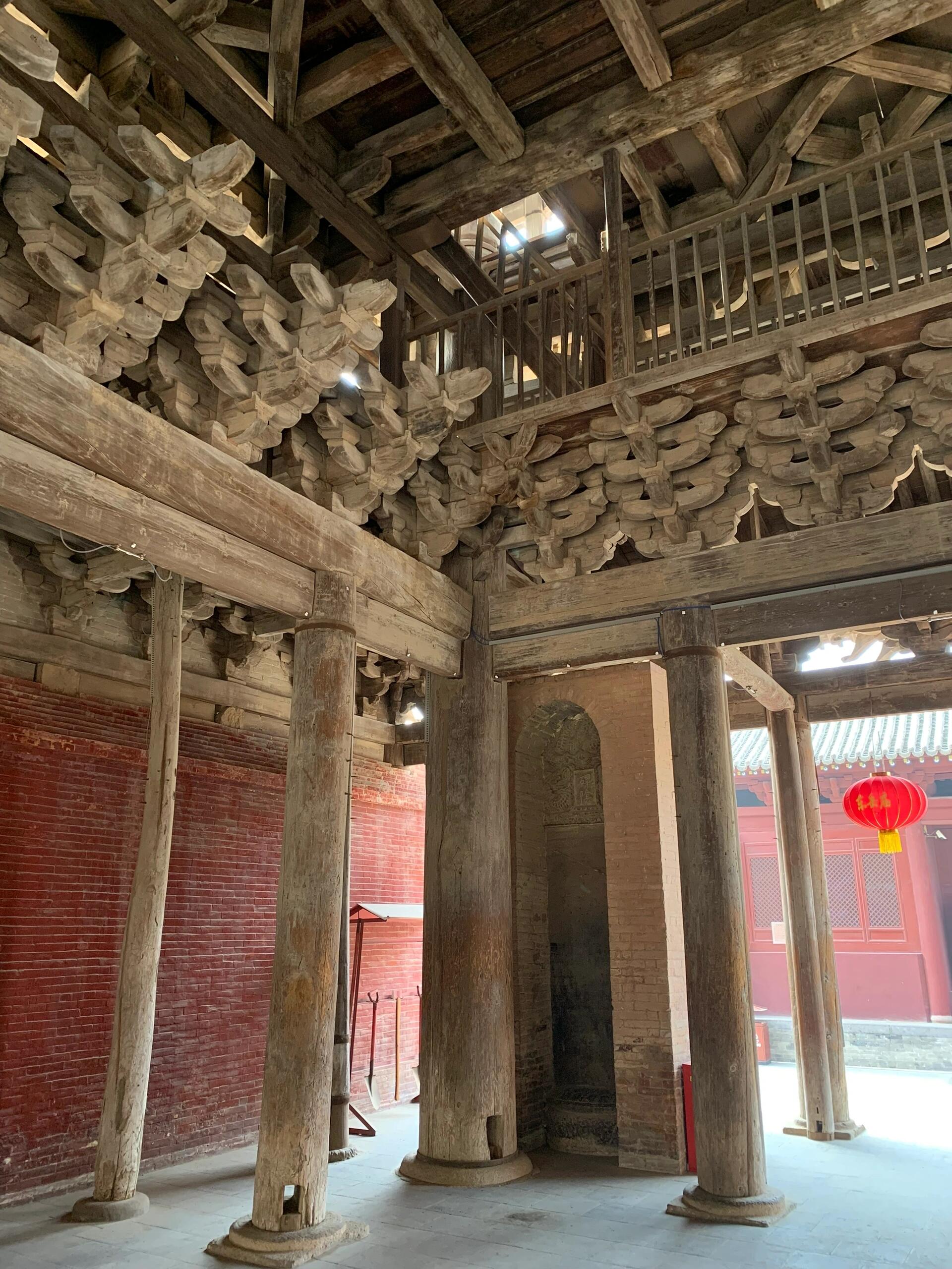 再往前走,献殿便出现在眼前。这座同样是元代建筑,后经明清重修的建筑,雄浑大气,是祭祀时放置贡品的地方。走进献殿,宽敞的空间给人一种庄严肃穆之感。虽然历经多次修缮,但仍保留着元代建筑的雄浑气势。殿内的梁柱粗壮结实,屋顶的构架简洁有力,让人仿佛能看到当年祭祀时的隆重场景。摆放贡品的案台,虽已不再有往日的祭品,但它的存在,却默默诉说着这里曾经的热闹与神圣。献殿的存在,不仅是建筑艺术的体现,更是古代祭祀文化的重要载体,承载着人们对神灵的敬畏与祈愿。