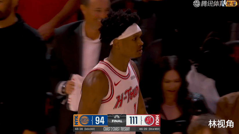 比赛结束,阿门、伊森等火箭球员走入场内,和尼克斯球员逐一击掌拥抱致意,尼克斯这边布伦森有些沮丧,在场边和队友击掌后直接走入球员通道,先一步退场了。