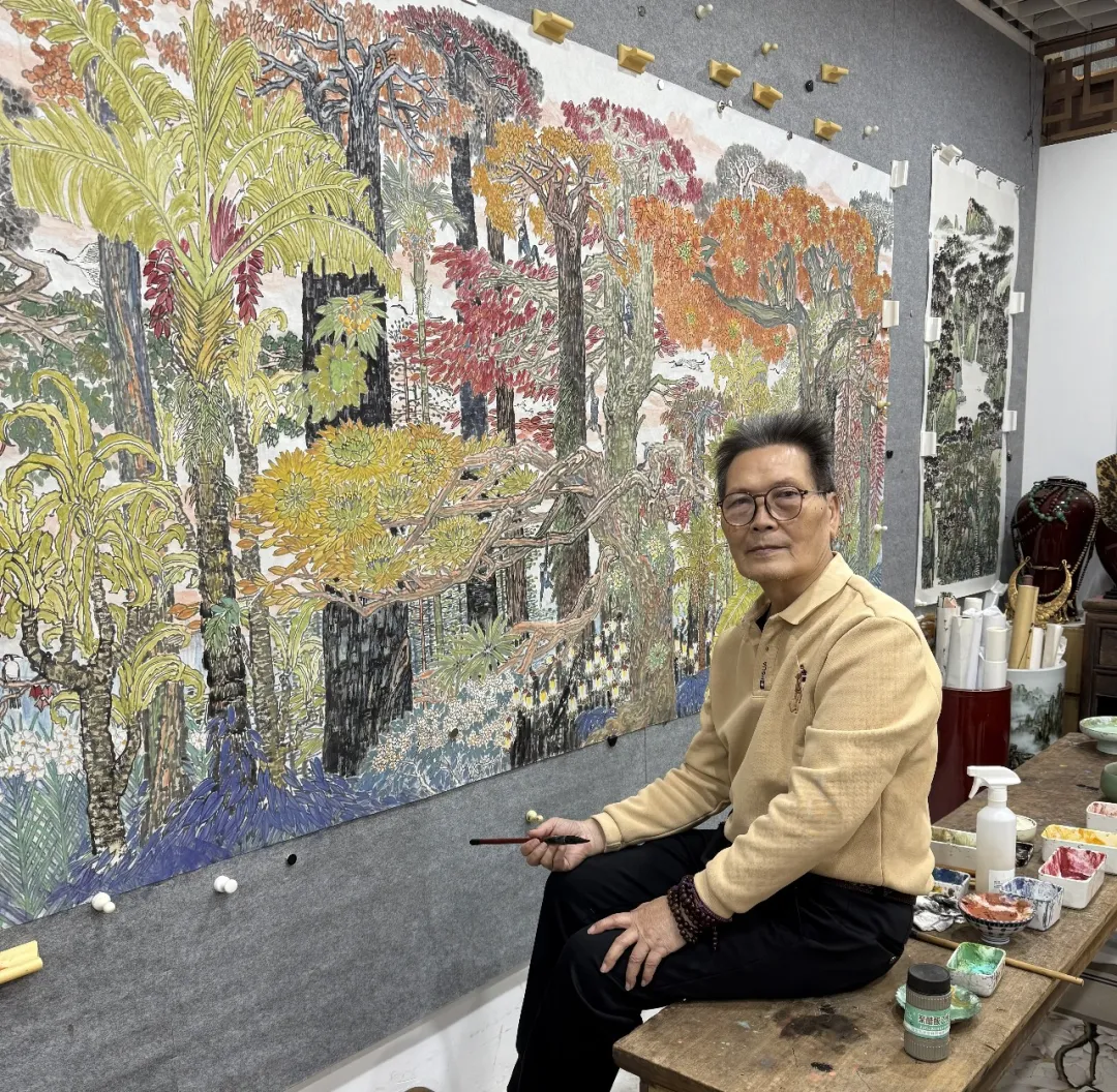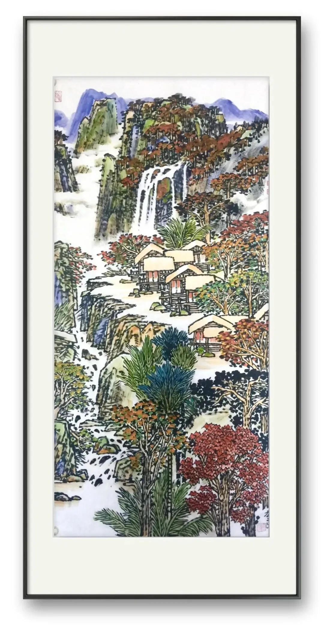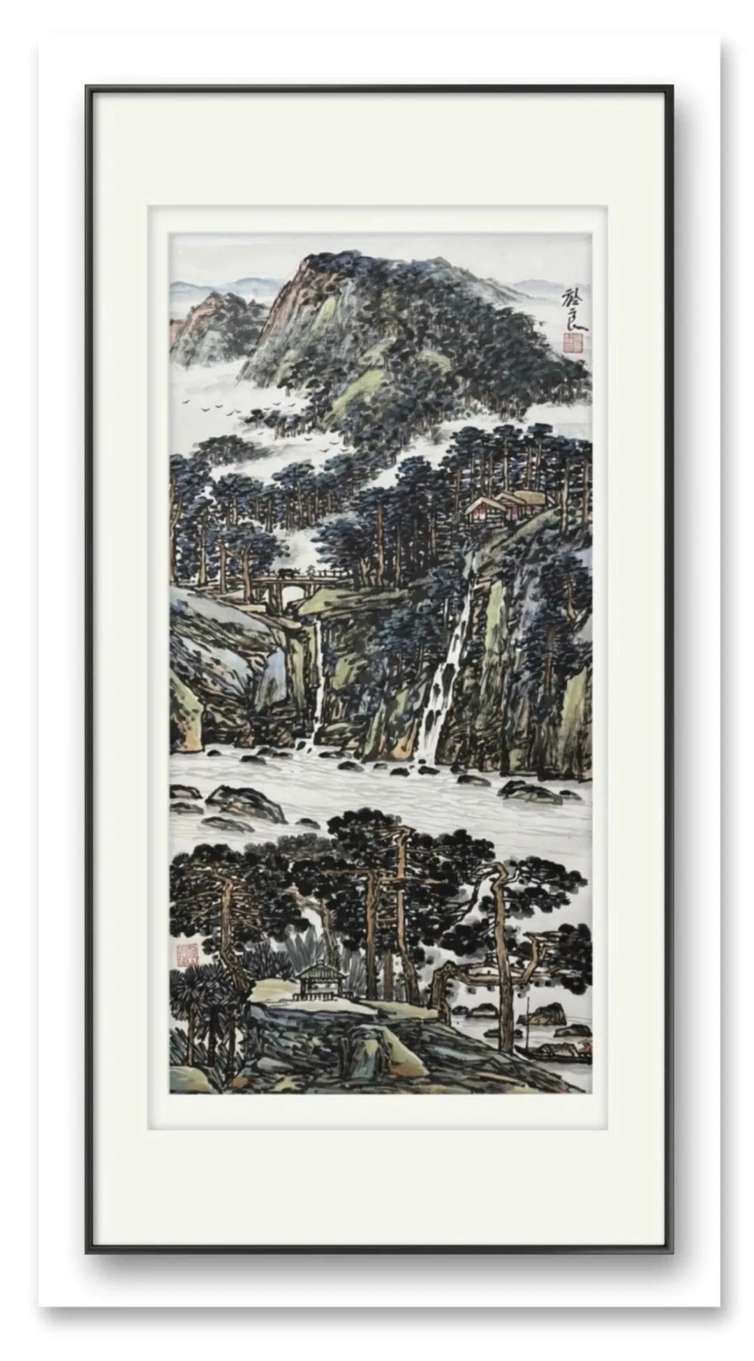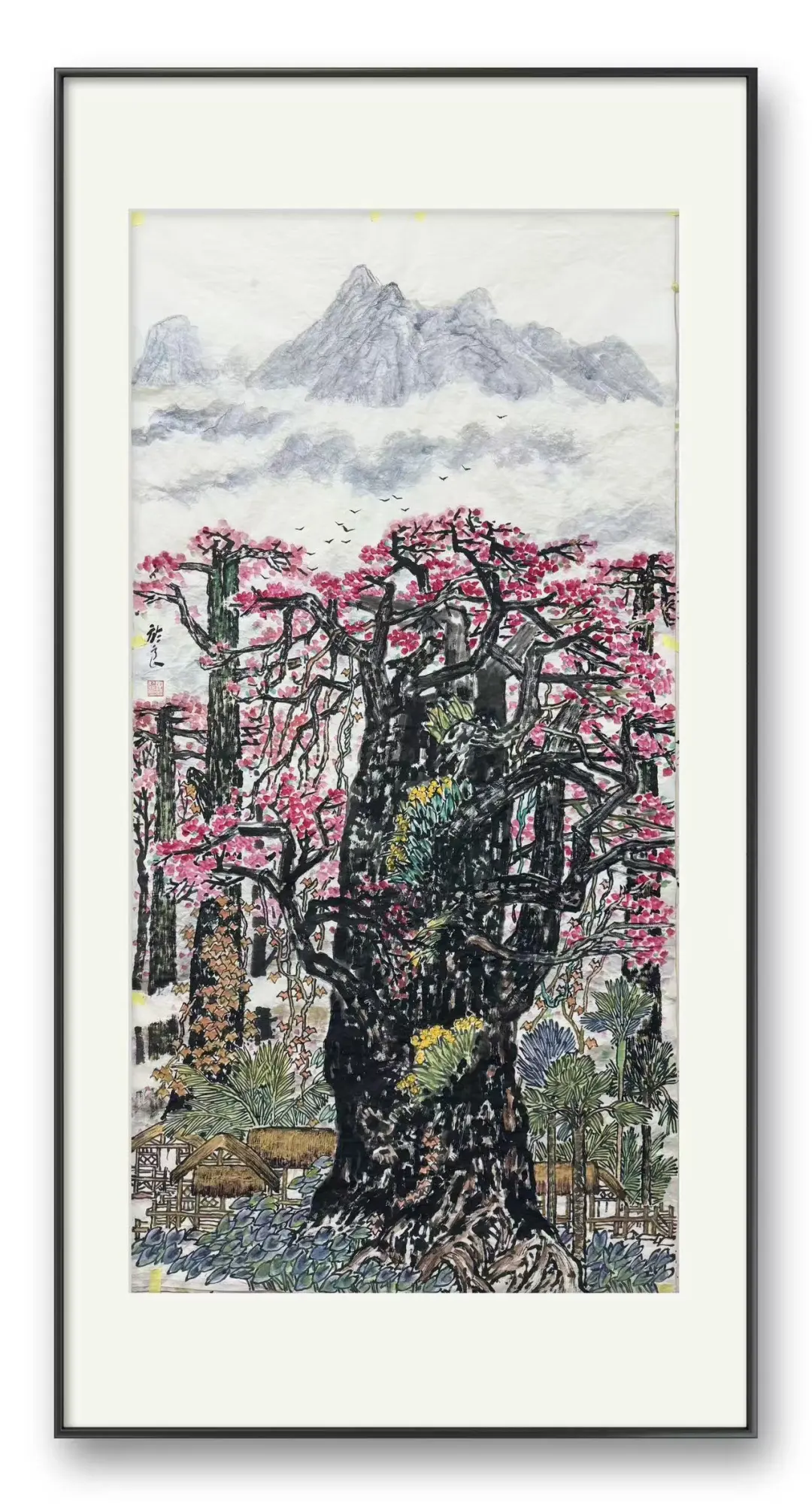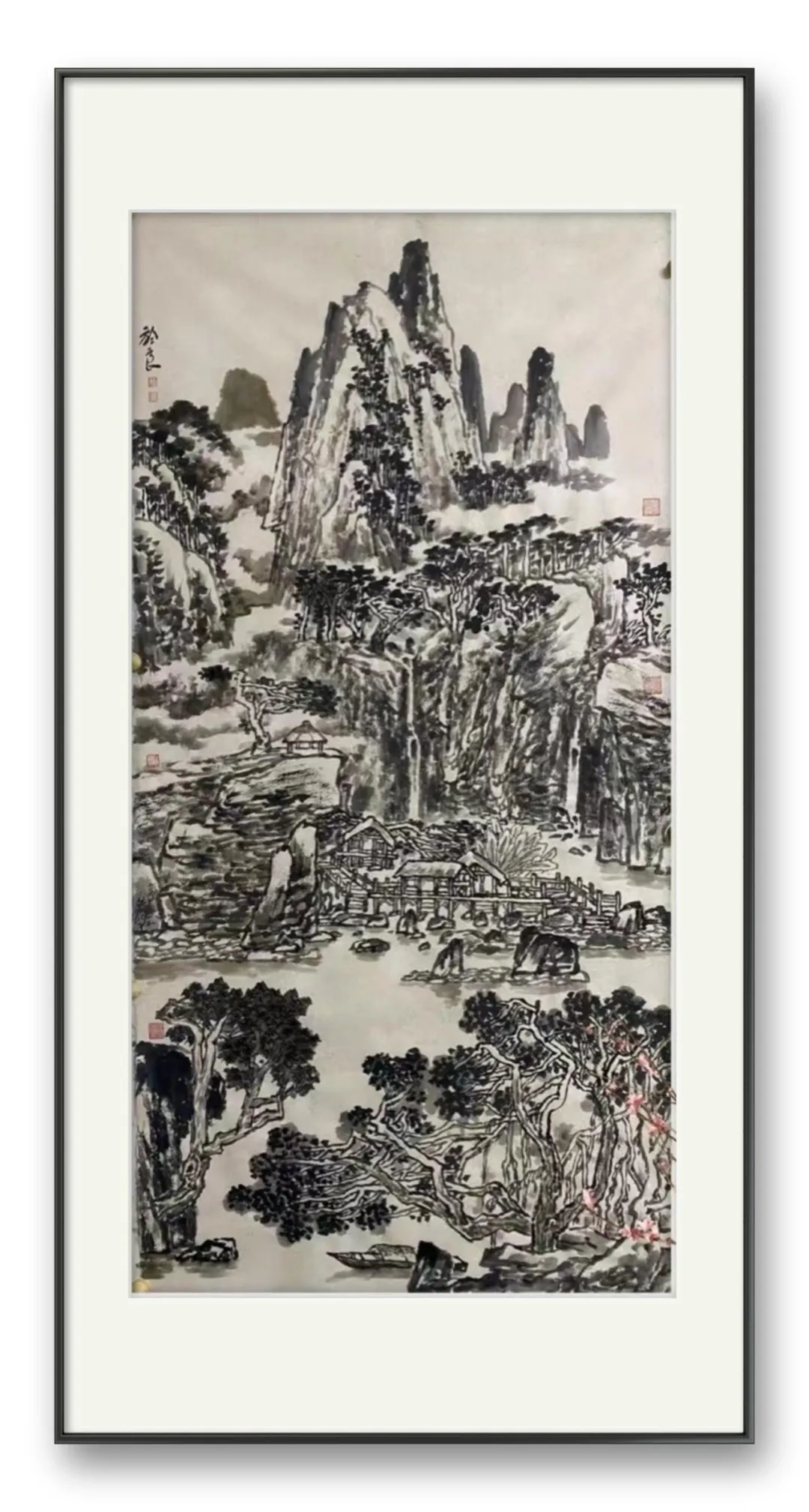 蔡於良的国画创作,以笔墨为桥梁,融南国风情与山水雅韵于一体。笔下时而钟楼依水,椰风摇情,轻舟曳影;时而翠岭连绵,云烟缭绕,村居隐现林壑之中。他将岭南之秀、山水之灵,收束于方寸尺幅,墨色浓淡相衬,线条苍润并济,营造出一片片诗意流转的意境天地。观者不仅可见自然之美好,亦能在其间寻得心灵的栖居与安宁。——「艺周刊」艺评组