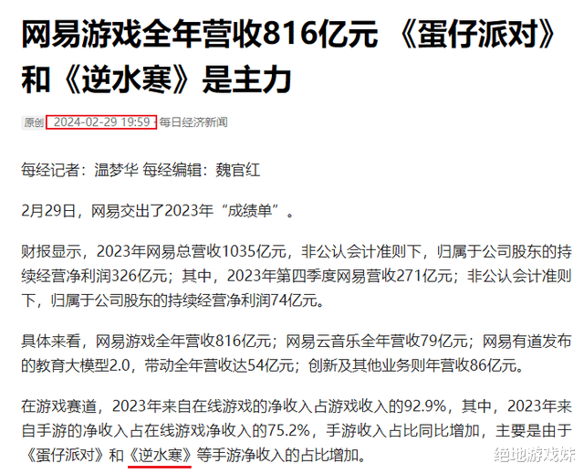 在财报中提及多款经典游戏持续受到玩家的欢迎,看到了眼熟的一款游戏《逆水寒》手游,财报夸奖游戏通过创新玩法和联动活动,提升了对玩家的吸引力,还特别提到了逆水寒于11月7日全球发行,将武侠世界带给了全球玩家。
