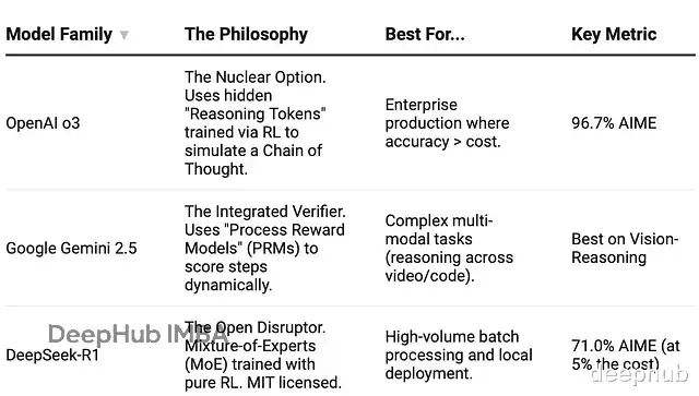 新的“思考”格局到了 2025 年底,OpenAI 不再是唯一的玩家,技术路径已经分化为三种。