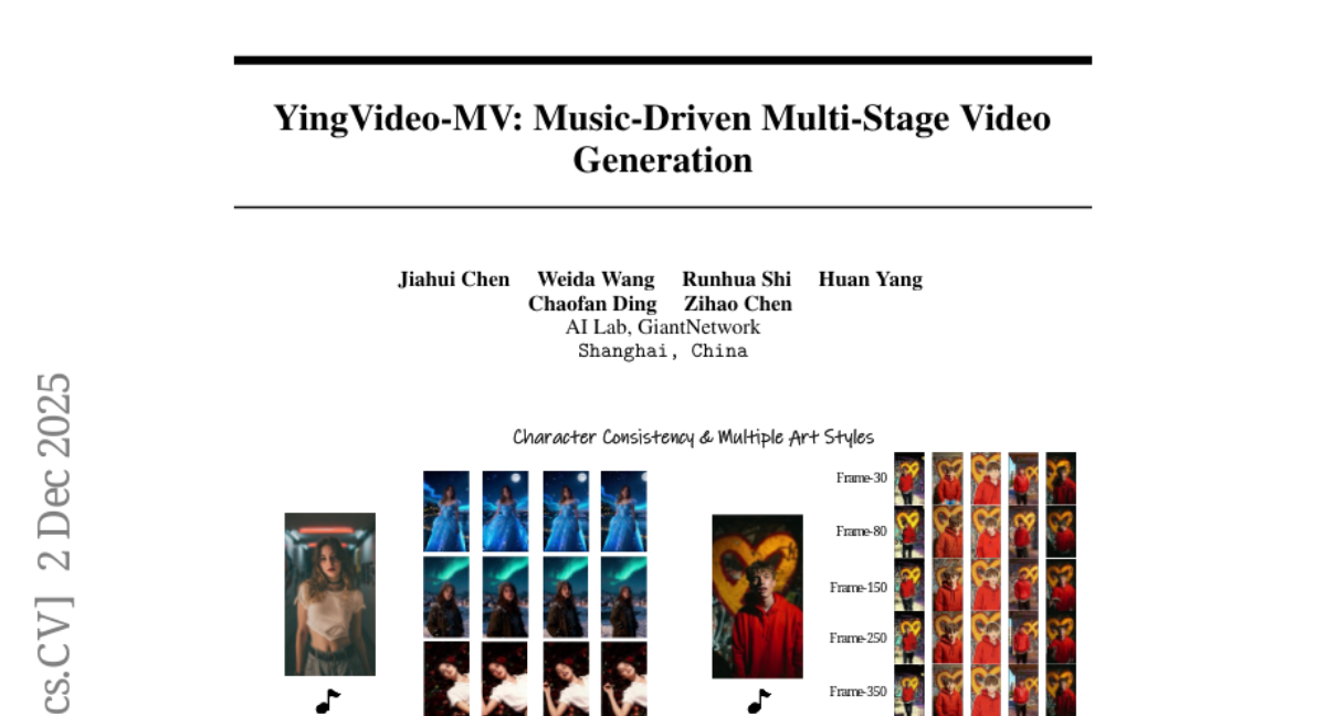 这项由中国上海巨人网络AI实验室的陈嘉辉、王伟达、石润华、杨欢、丁朝凡、陈子豪等研究人员共同完成的研究,发表于2024年12月2日的arXiv预印本平台,论文编号为arXiv:2512.02492v1。这项名为"YingVideo-MV"的研究成果,为音乐视频制作领域带来了革命性的突破。感兴趣的读者可以通过论文编号arXiv:2512.02492v1在相关学术平台查询完整论文。