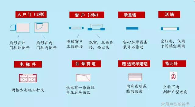学会看户型1.首先要要尝试学会看户型符号,如下图所示: