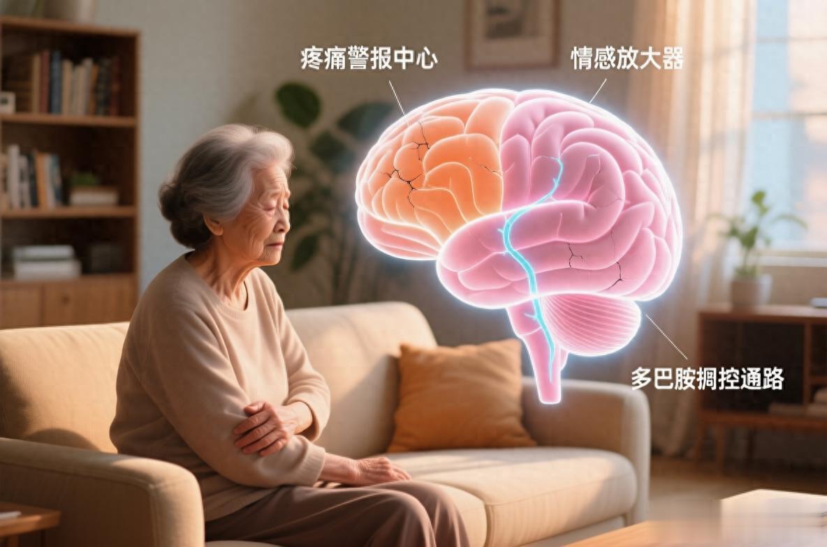 李阿姨的困惑,代表了高达三分之二的帕金森病患者的心声。流行病学研究显示,多达三分之二的帕金森病患者会经历各种痛苦的感觉,比如酸痛、痉挛、麻木或烧灼感,这些疼痛严重影响了他们的生活质量 。虽然有些疼痛是继发于运动障碍,可以通过多巴胺治疗改善 ,但像李阿姨这种**“药效不佳”**的疼痛,似乎在暗示:问题的根源,可能藏在更深处——我们的大脑中 。