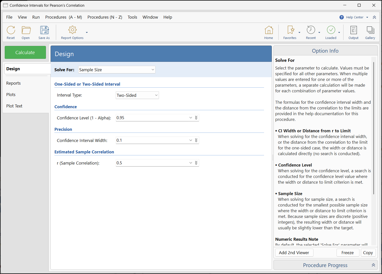 PASS 2026程序改进选项信息提示在68个附加程序中,主要是置信区间程序,鼠标悬停选项信息消息得到了改进。特别是,“求解”选项描述已针对每个程序进行了定制。PASS旧版本选项信息( Pearson相关系数置信区间示例)