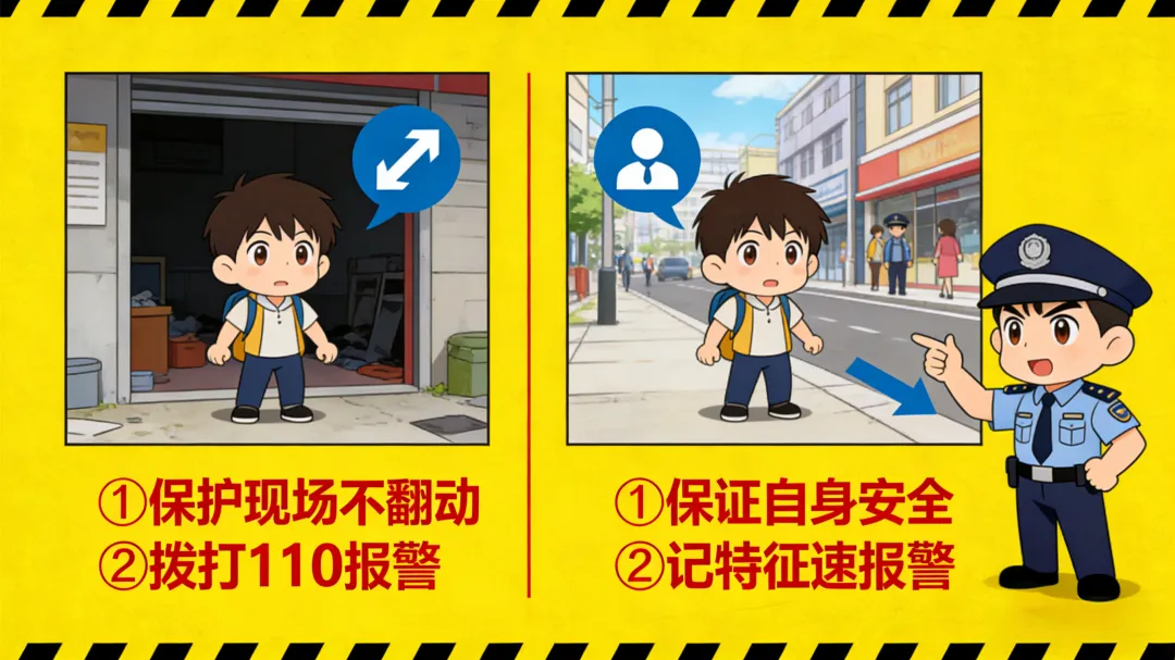 2.立即记住小偷特征(身高、口音、衣着、疤痕等),随后迅速报警提供线索。