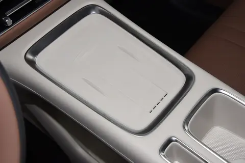 作为通勤党,这台车的细节设计戳中了我的日常痛点。中控的开放式补妆台搭配车内柔和的氛围灯,早上来不及化妆时,等红灯的间隙就能快速补个口红;175mm的口红槽专门放常用色号,再也不用在包里翻找;50W无线充让手机随时满电,通勤路上刷导航、听Podcast毫无压力。