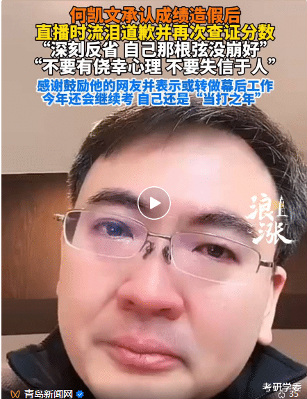 3月8日,何凯文终于认怂,承认实际71分,道歉退圈。他说自己造假是为了“维持教学可信度”,但网友根本不买账:“教别人考试的人自己造假,学生还敢信你?”